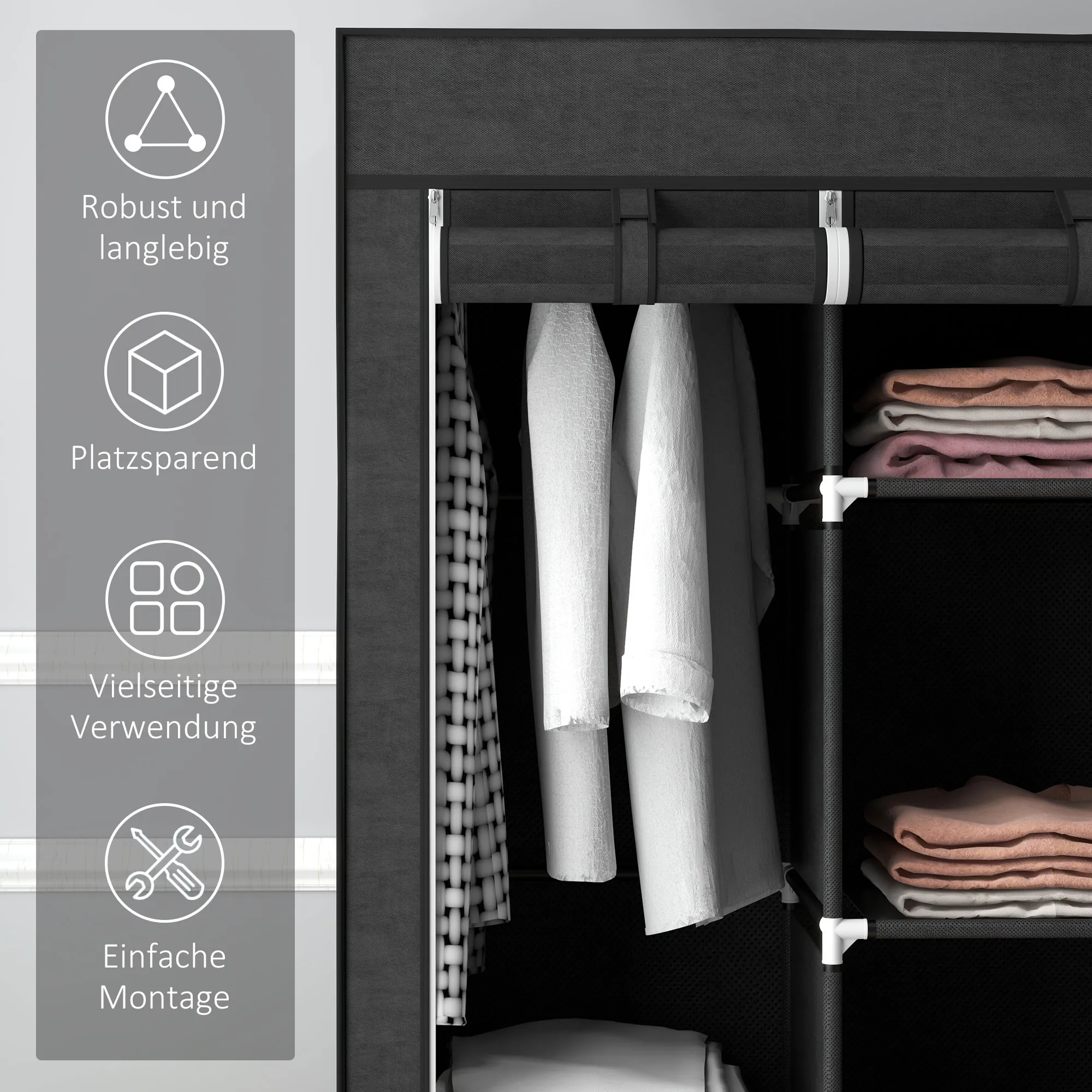 - Der Bezug aus Vliesstoff schützt deine Sachen vor Staub und bietet die ideale Organisationslösung.