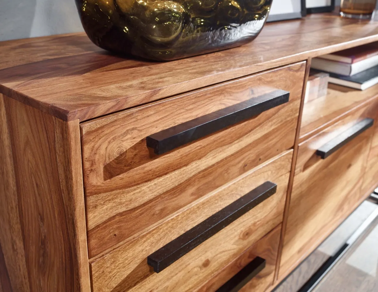 - Korpus und Schubladen: Sheesham Massivholz, mit Klarlack beschichtet
