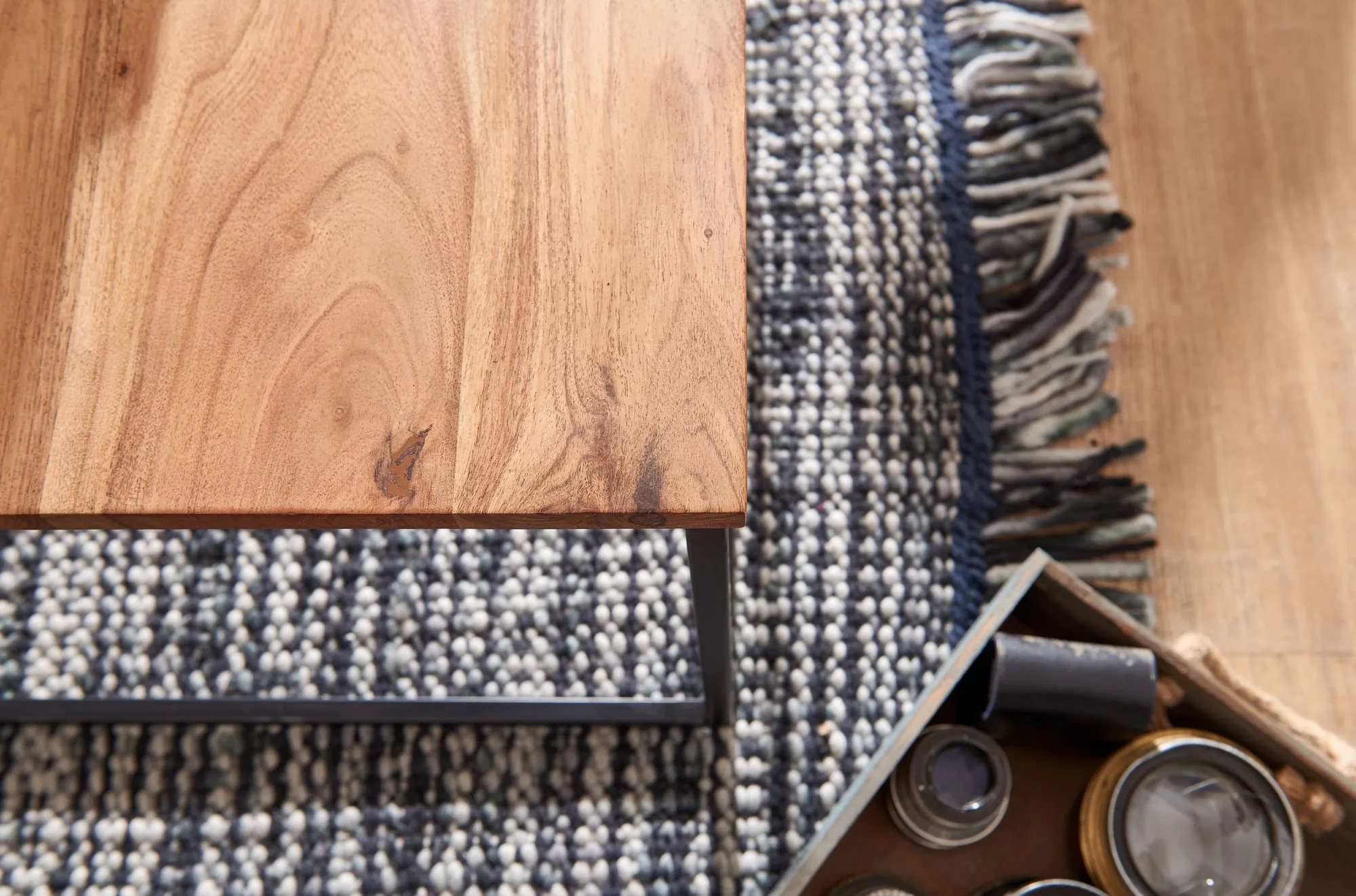 - Quadratische Tischplatte mit schöner Maserung des Akazienholzes