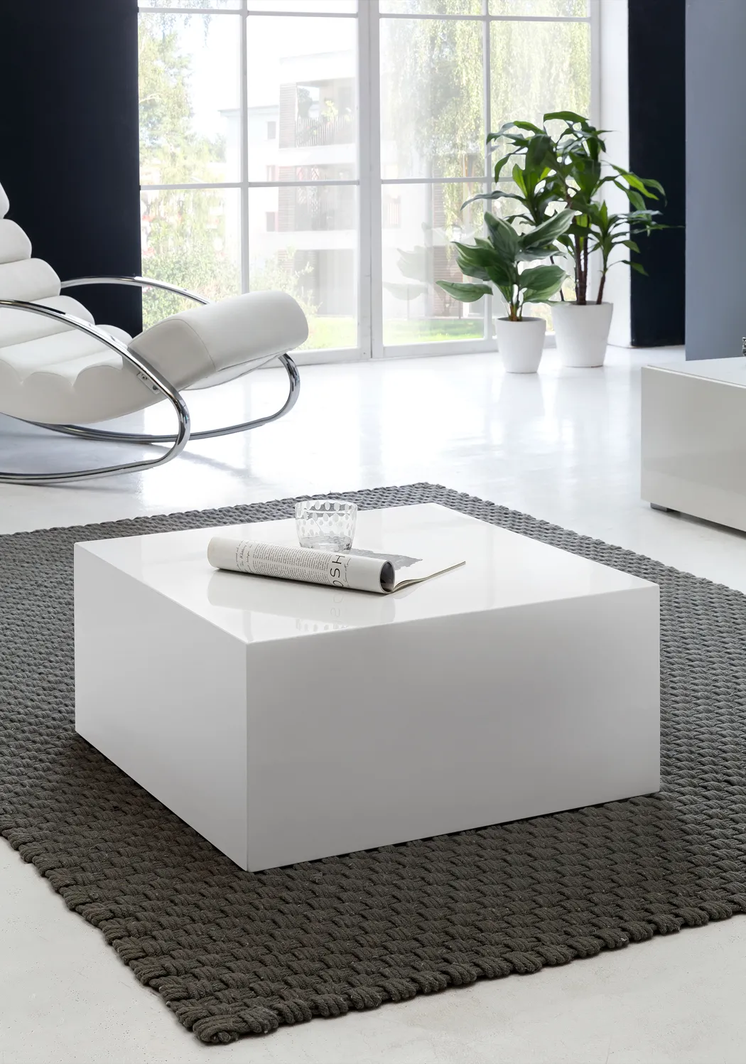 tinkaro Couchtisch quadratisch DIDO Hochglanz Holz Wohnzimmertisch Weiß