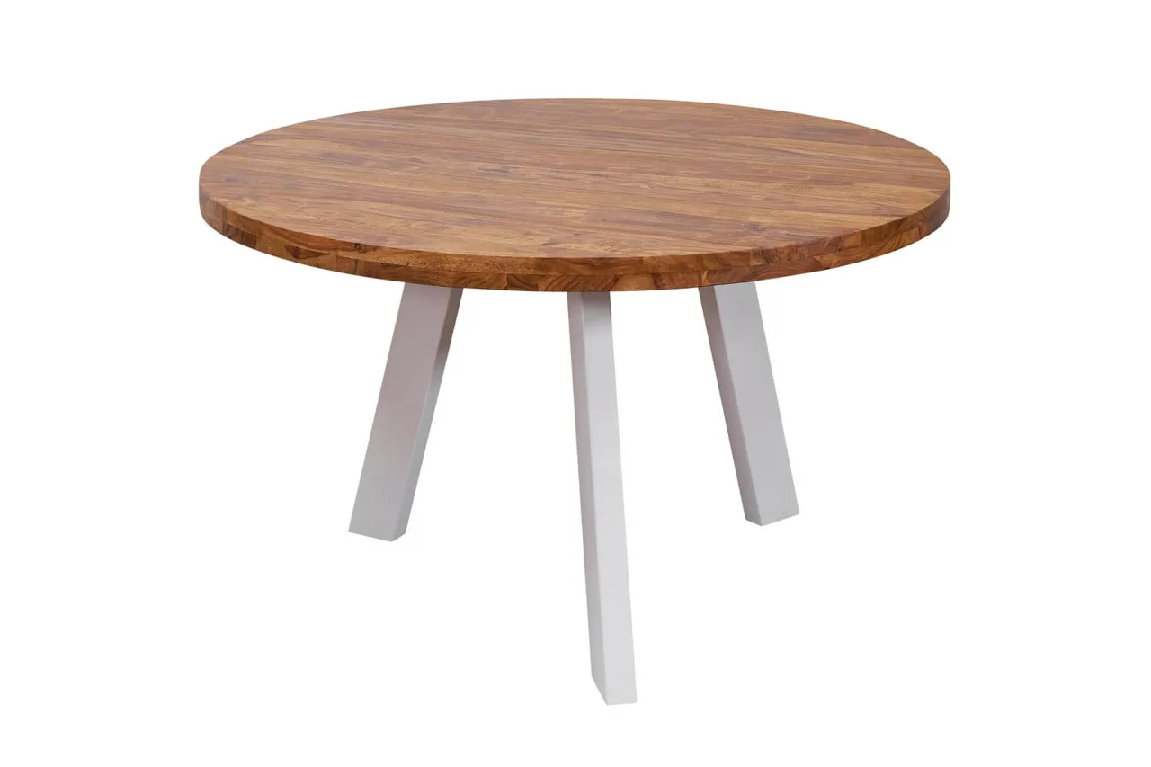 tinkaro Esszimmertisch rund AVNI Sheesham Massiv Esstisch Braun/Weiß