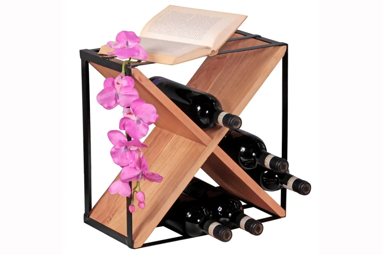 tinkaro eckiger Flaschenständer AUDAR Massiv-Holz Akazie 012979 Standregal Flaschenhalter Braun