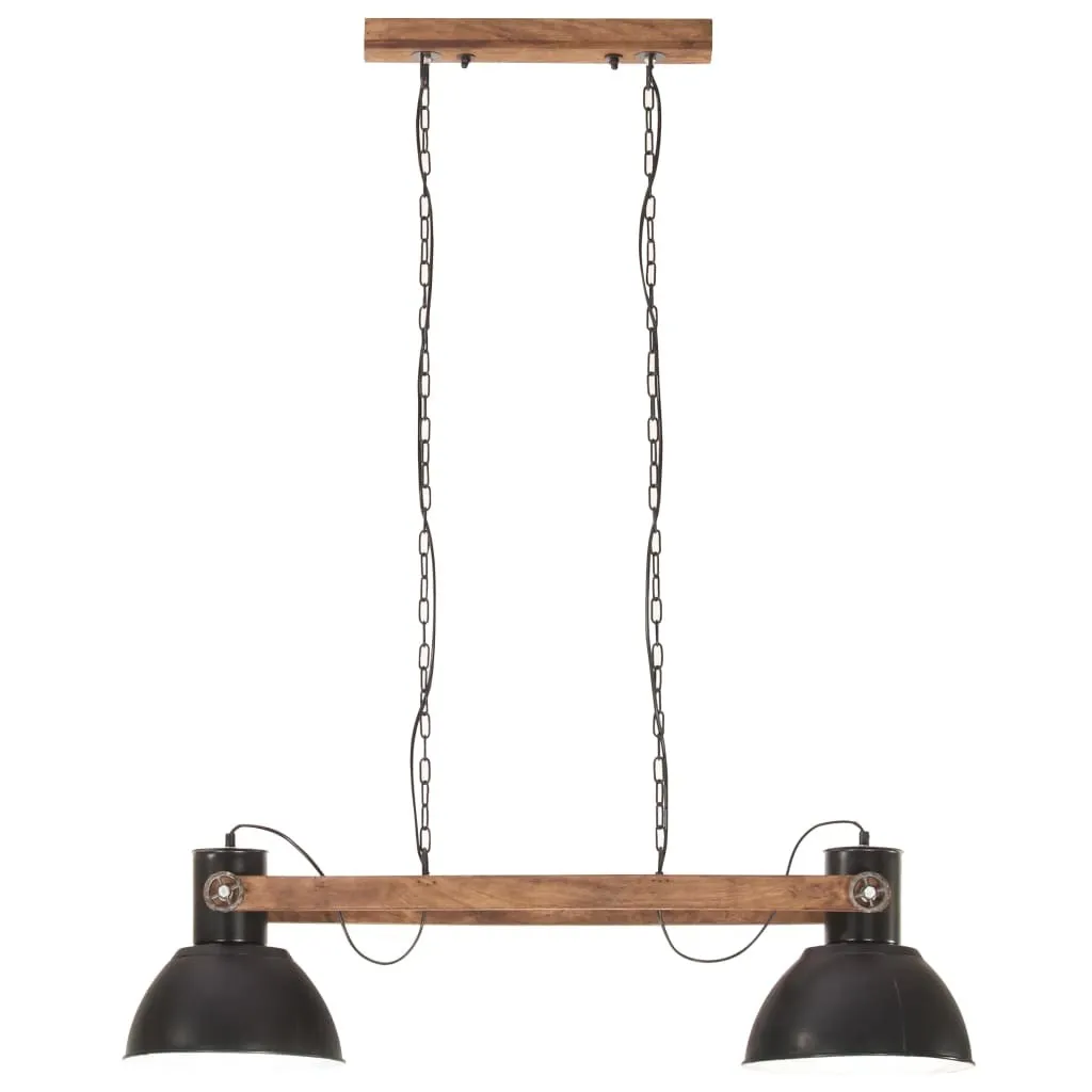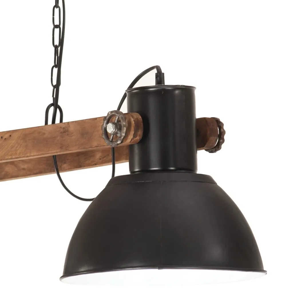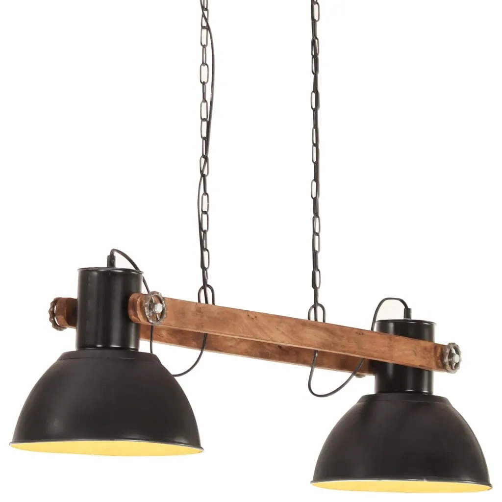 Mit einer Gesamtlänge von 109 cm und einem Durchmesser von 29 cm pro Lampenschirm ist diese Hängelampe ein echter Hingucker im Wohnzimmer, Esszimmer oder Büro. Der Lampenschirm aus Eisen mit schwarzer Beschichtung und massivem Mangoholz mit verwittertem braunem Finish passt perfekt zu jedem Interieur im Landhaus- oder Industriestil. Die Deckenleuchte mit 2 Lampenschirmen verfügt über E27-Fassungen für Glühbirnen von maximal 25 Watt. Sie können E27-Leuchtmittel mit verschiedenen Leuchtfarben auswählen und einsetzen, um eine Atmosphäre der Entspannung und Ruhe zu schaffen. Bitte beachten: Diese Lampe im Industriestil weist Unvollkommenheiten am Lampenschirm auf, was der Lampe ihre eigene Identität verleiht und sie durch ihre raue Optik einzigartig macht. Die Leuchtmittel sind nicht im Lieferumfang enthalten.