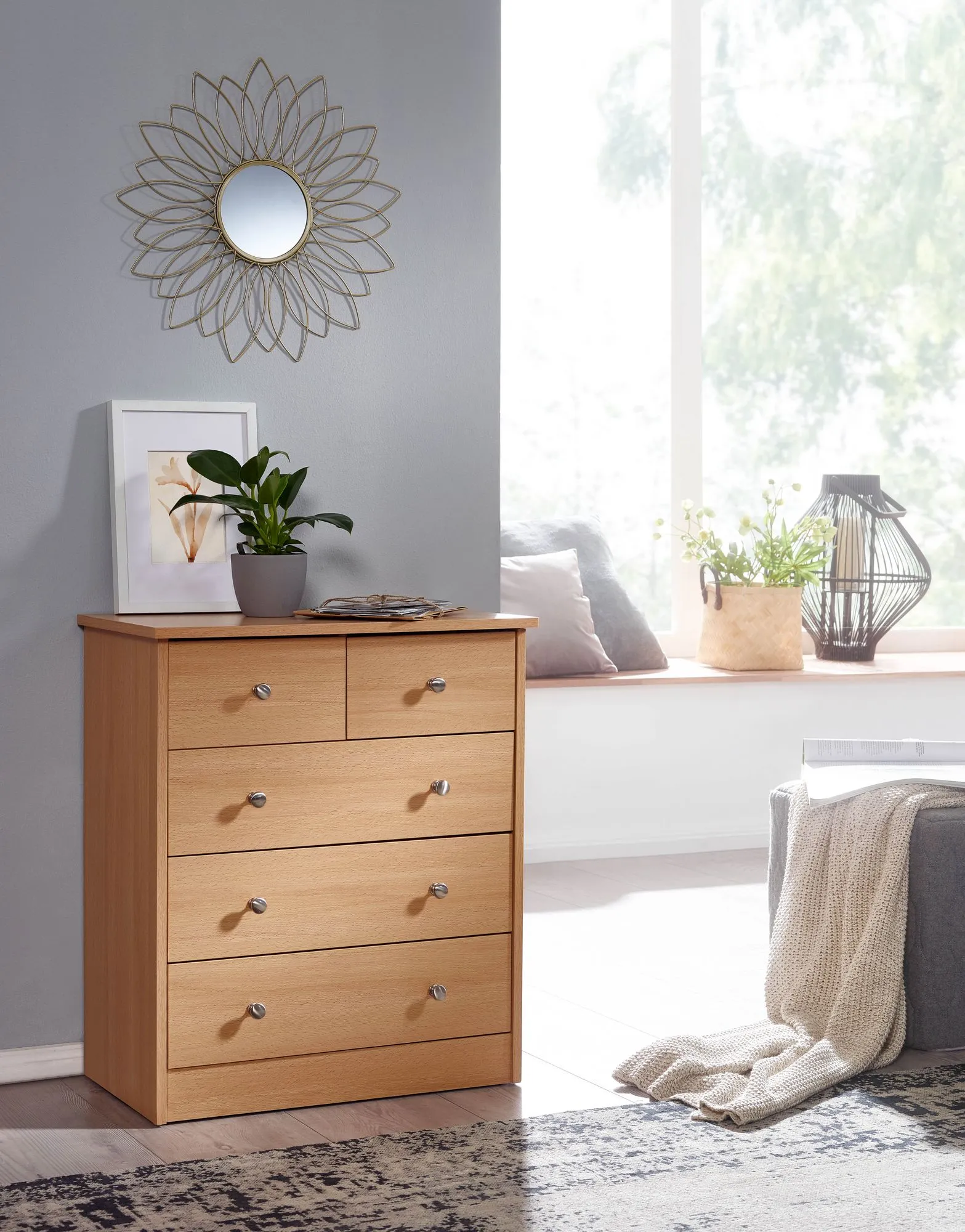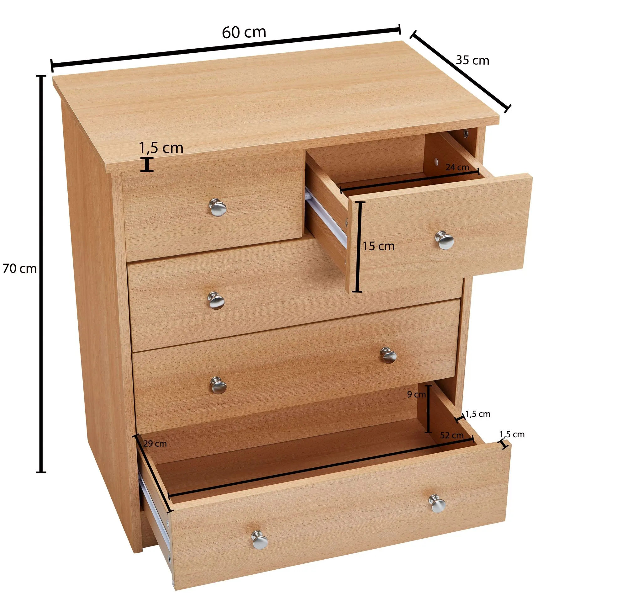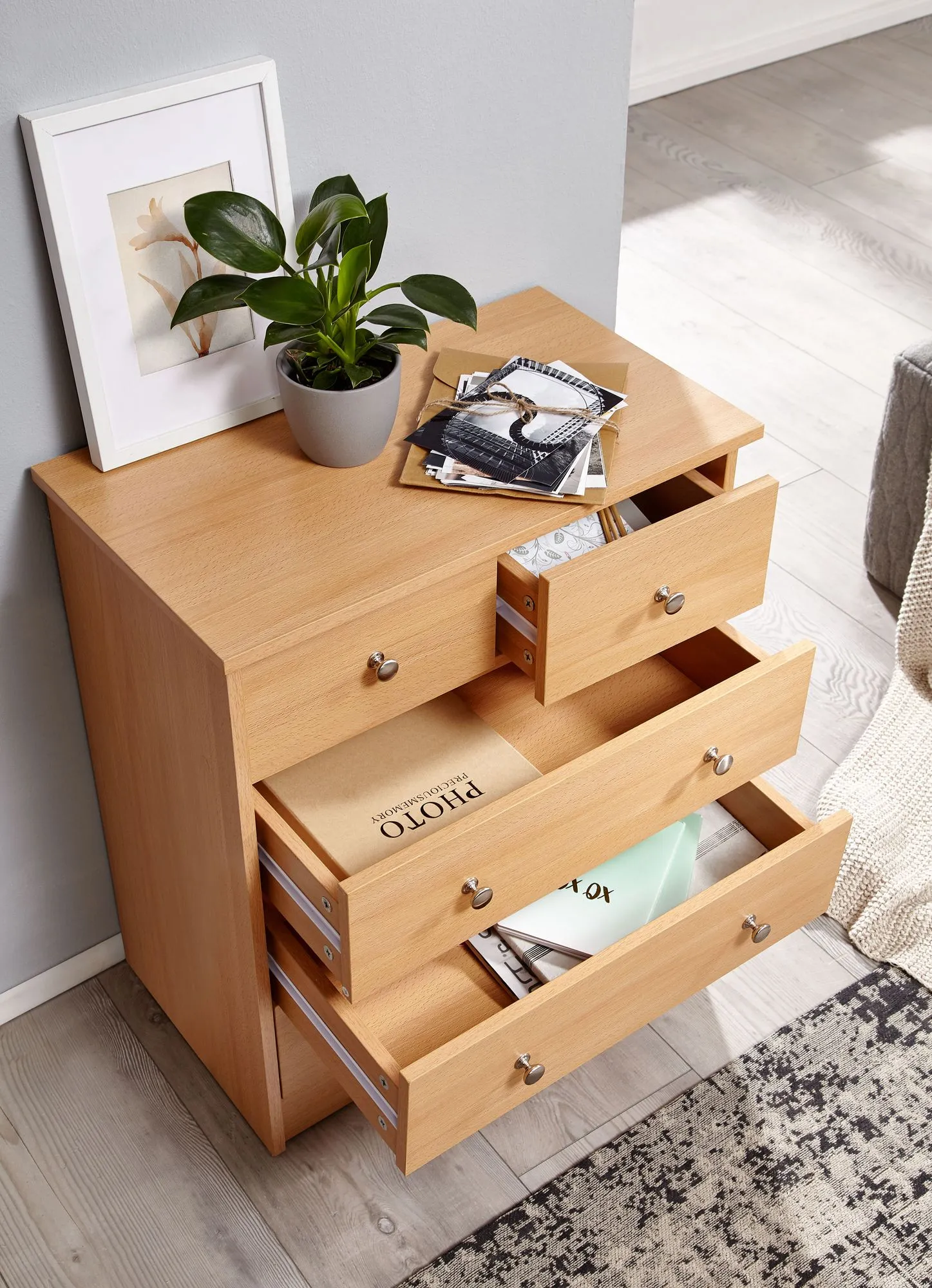 - Kommode mit fünf Schubladen in zwei Größen