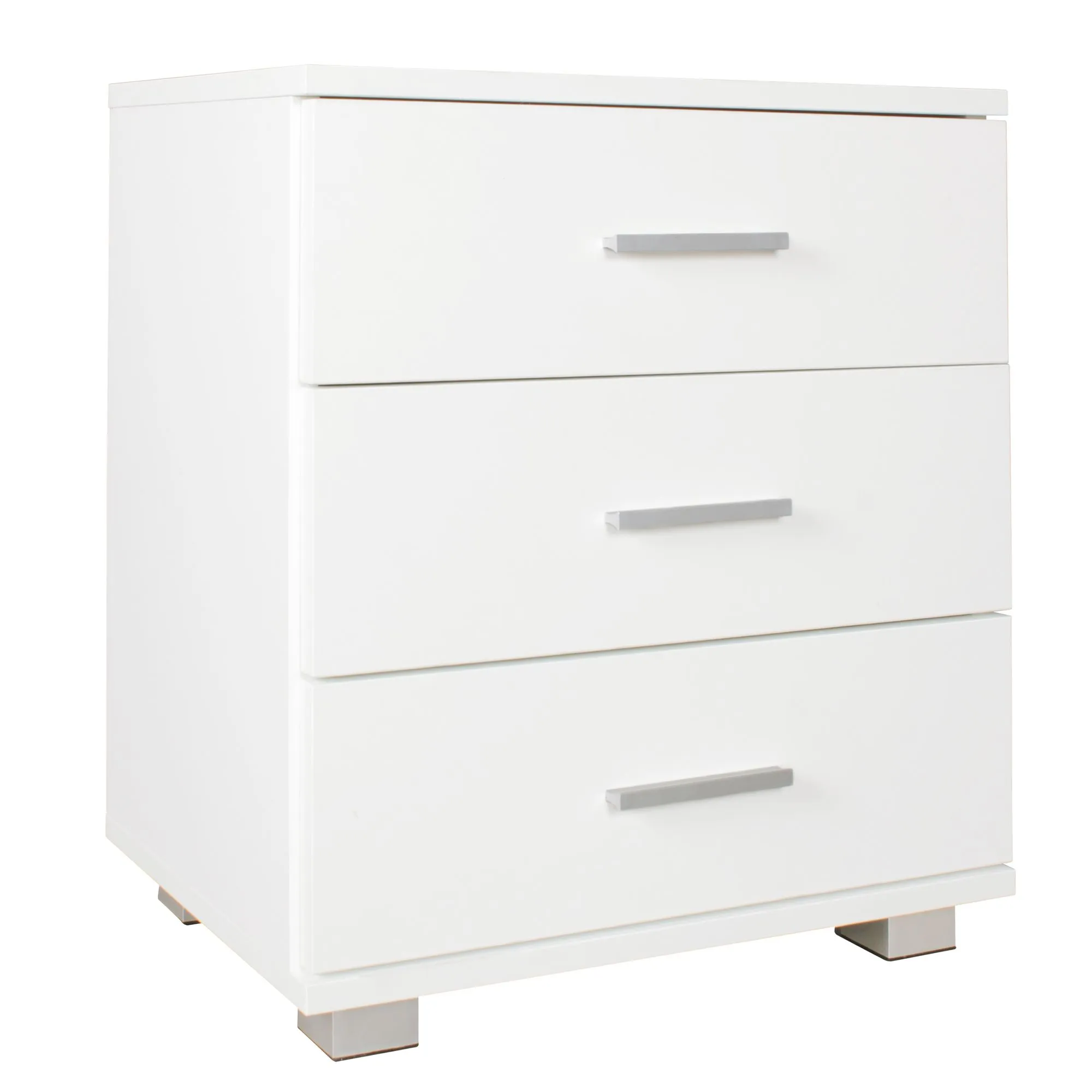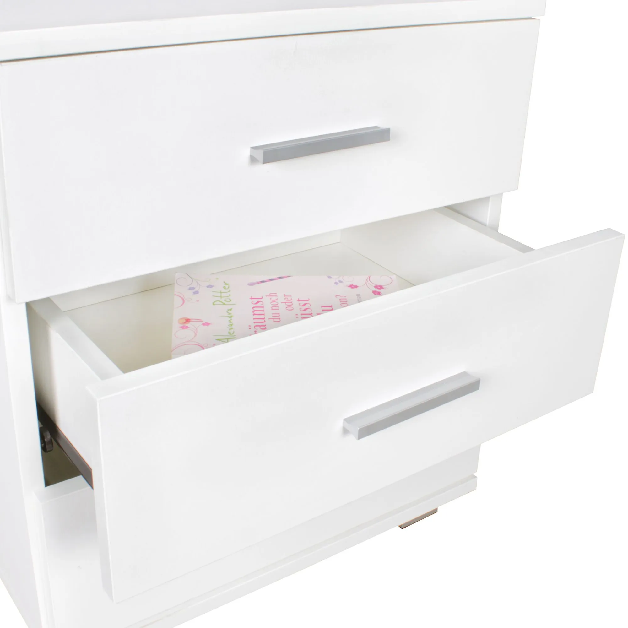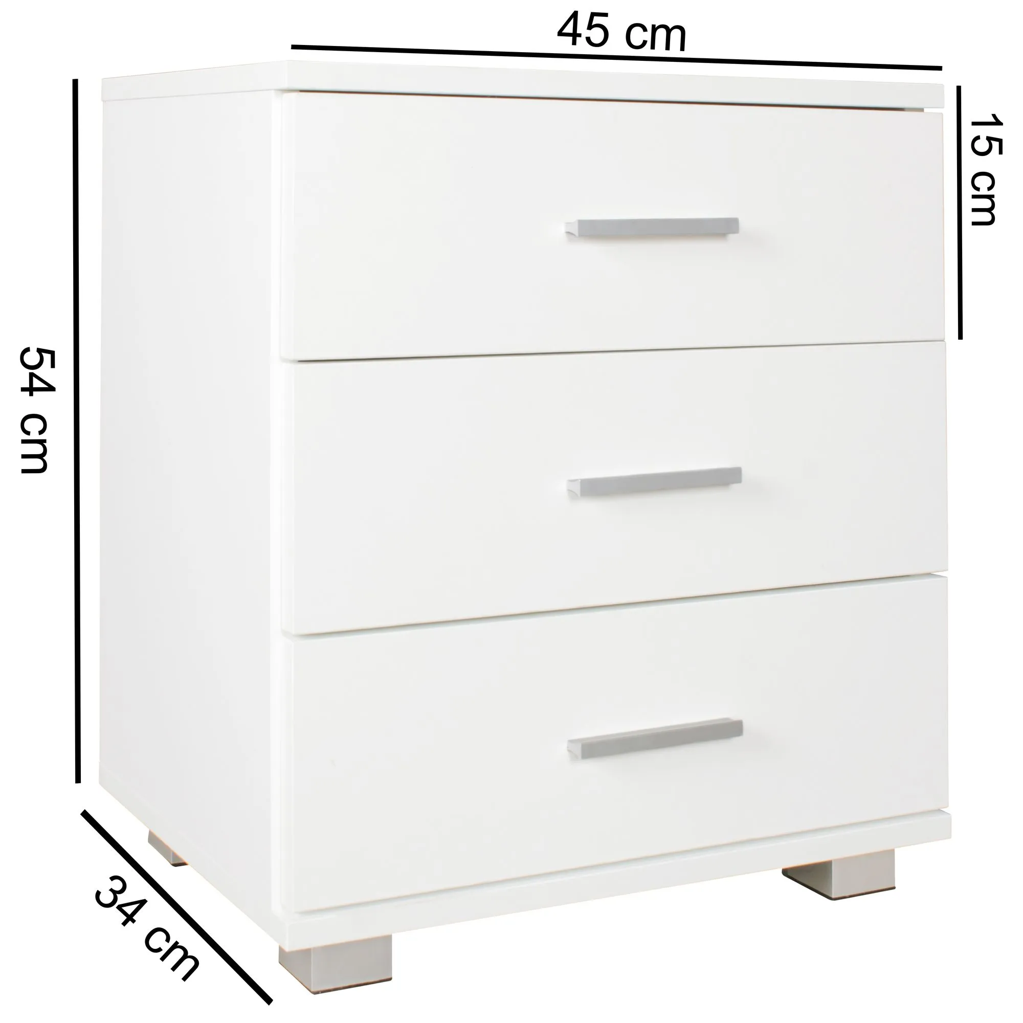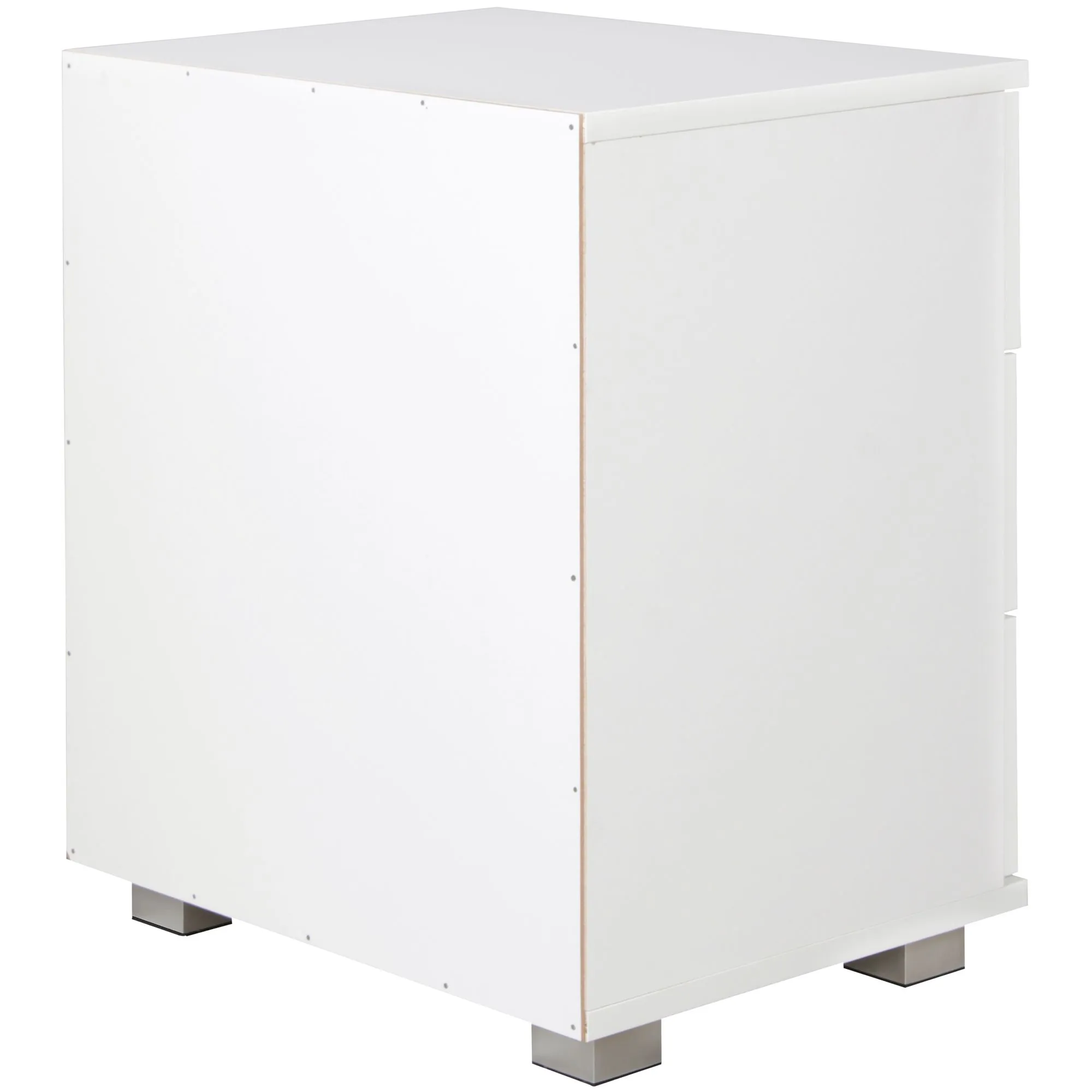 - Farbe: Komplettes Nachtkästchen ist weiß furniert / Standfüße sind Silber matt lackiert