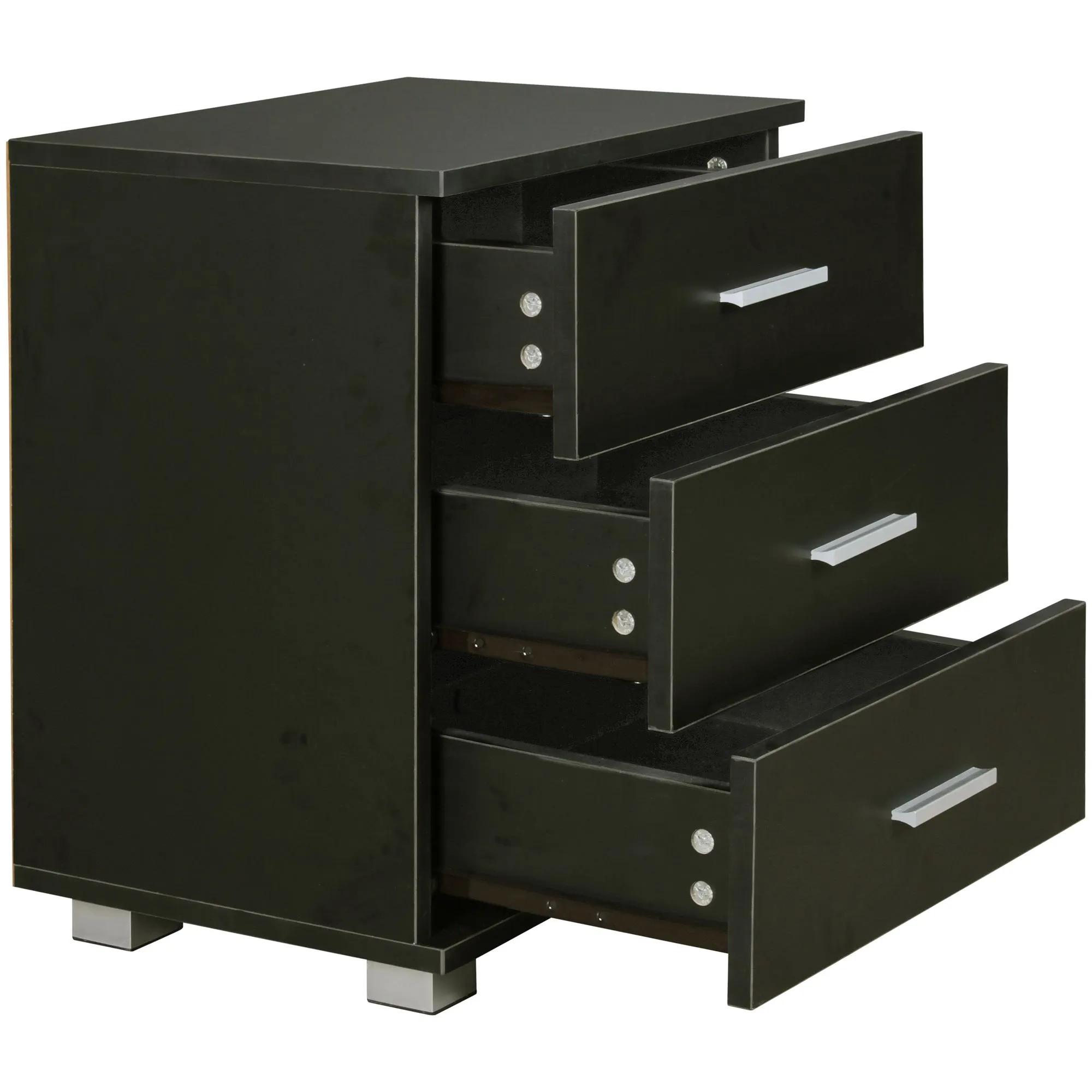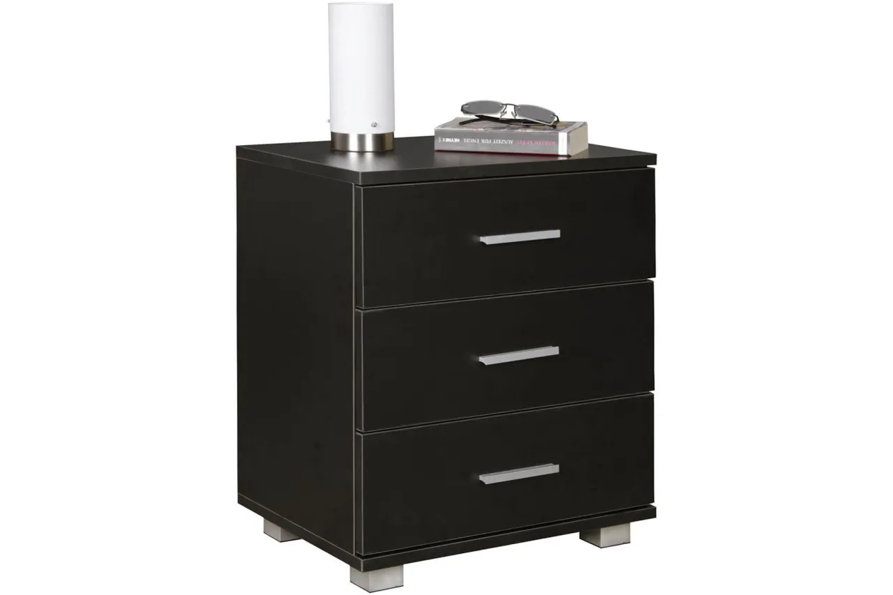 - Farbe: Komplettes Nachtkästchen ist schwarz furniert / Standfüße sind Silber matt lackiert