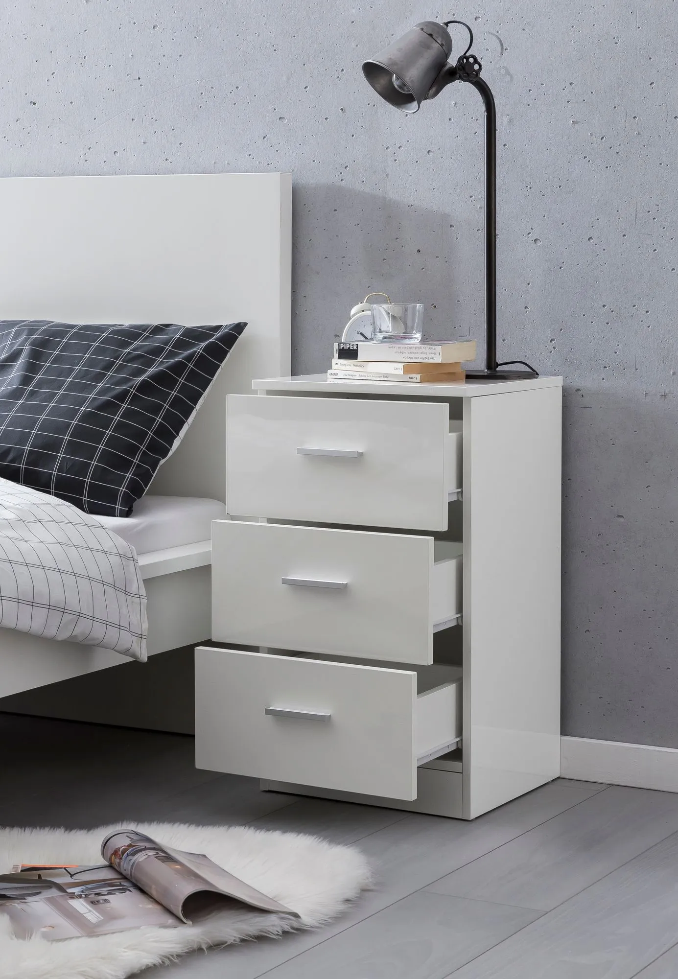 - Edles Nachtkästchen mit drei Schubladen in Hochglanzoptik