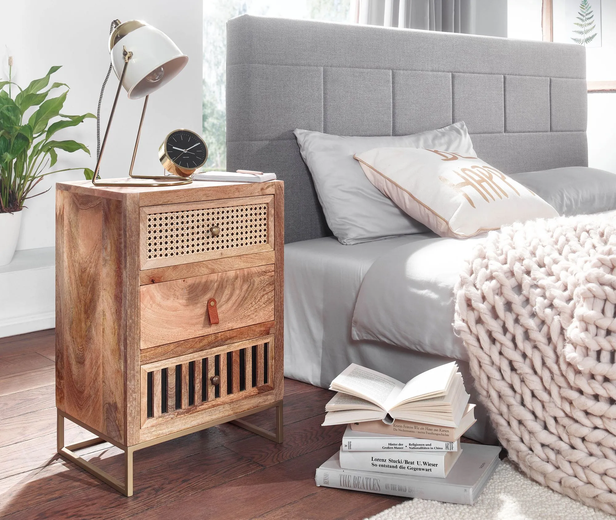 tinkaro Nachttisch eckig BIBI Mango Massivholz Nachtkommode Braun