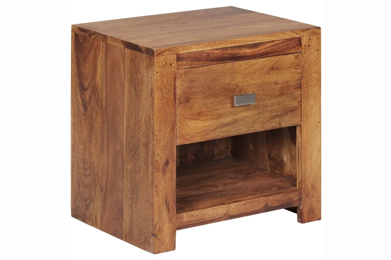 tinkaro Nachttisch eckig CHARLIE Sheesham Massiv-Holz Lowboard Braun