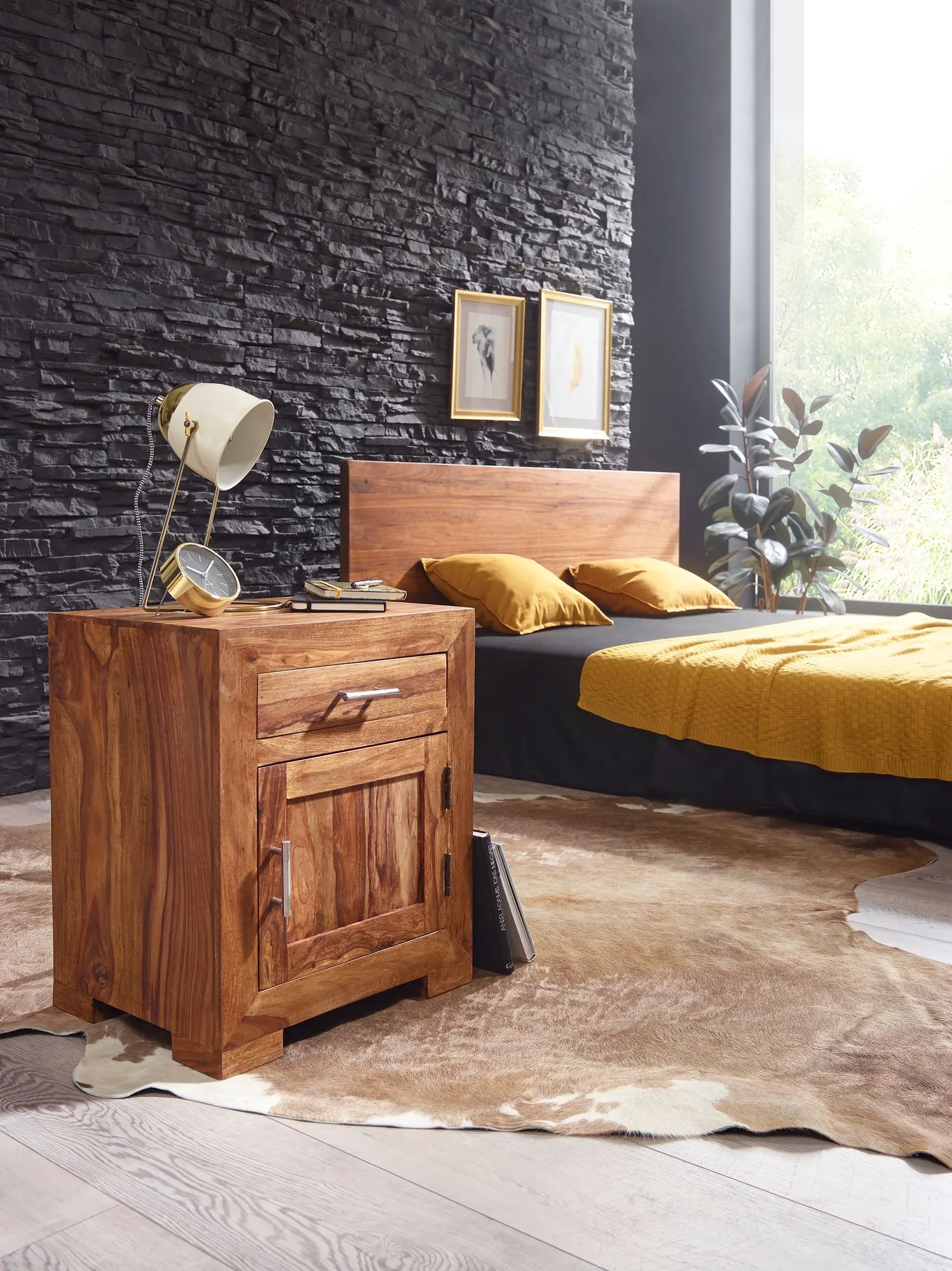 tinkaro Nachttisch eckig DILA Massivholz Sheesham Nachtkommode Braun