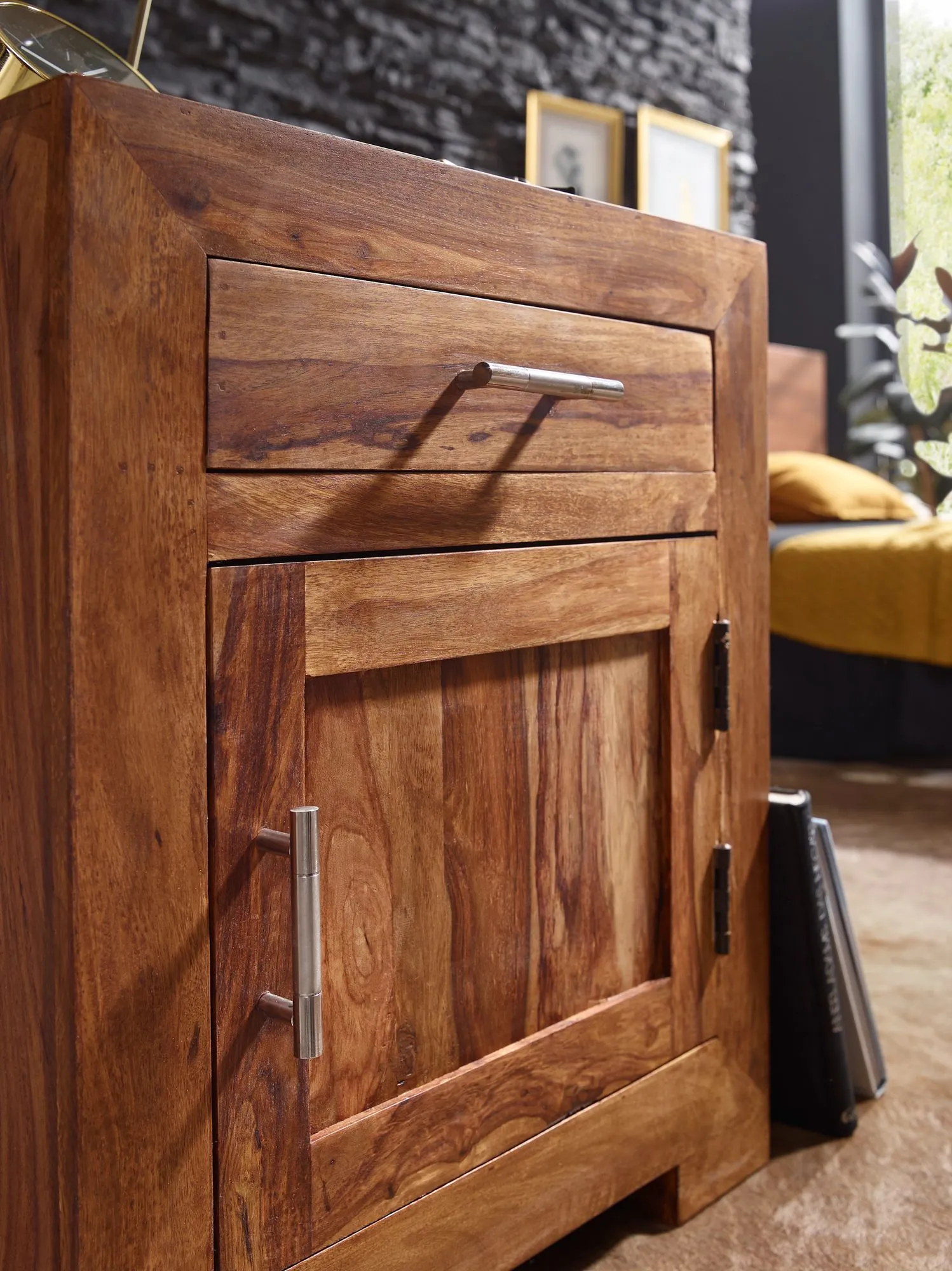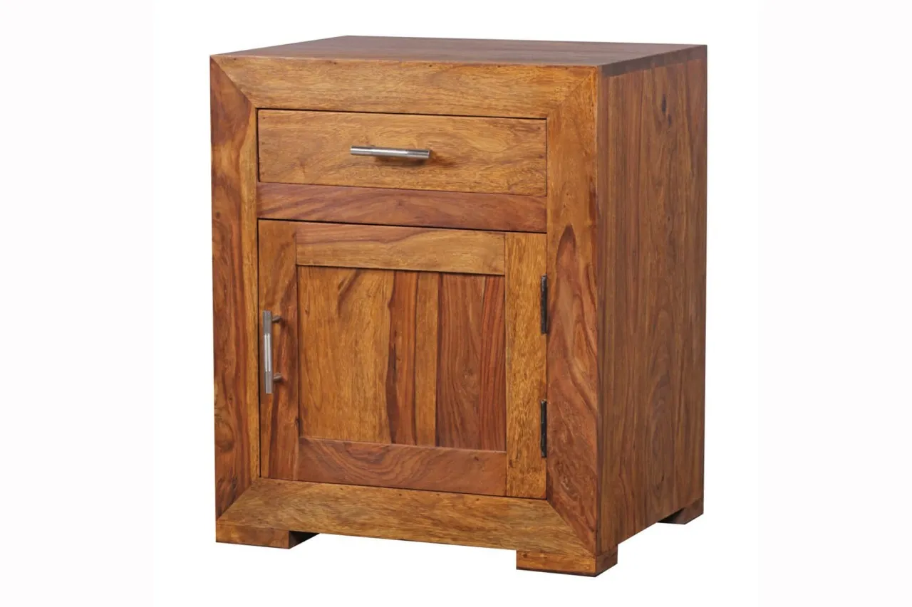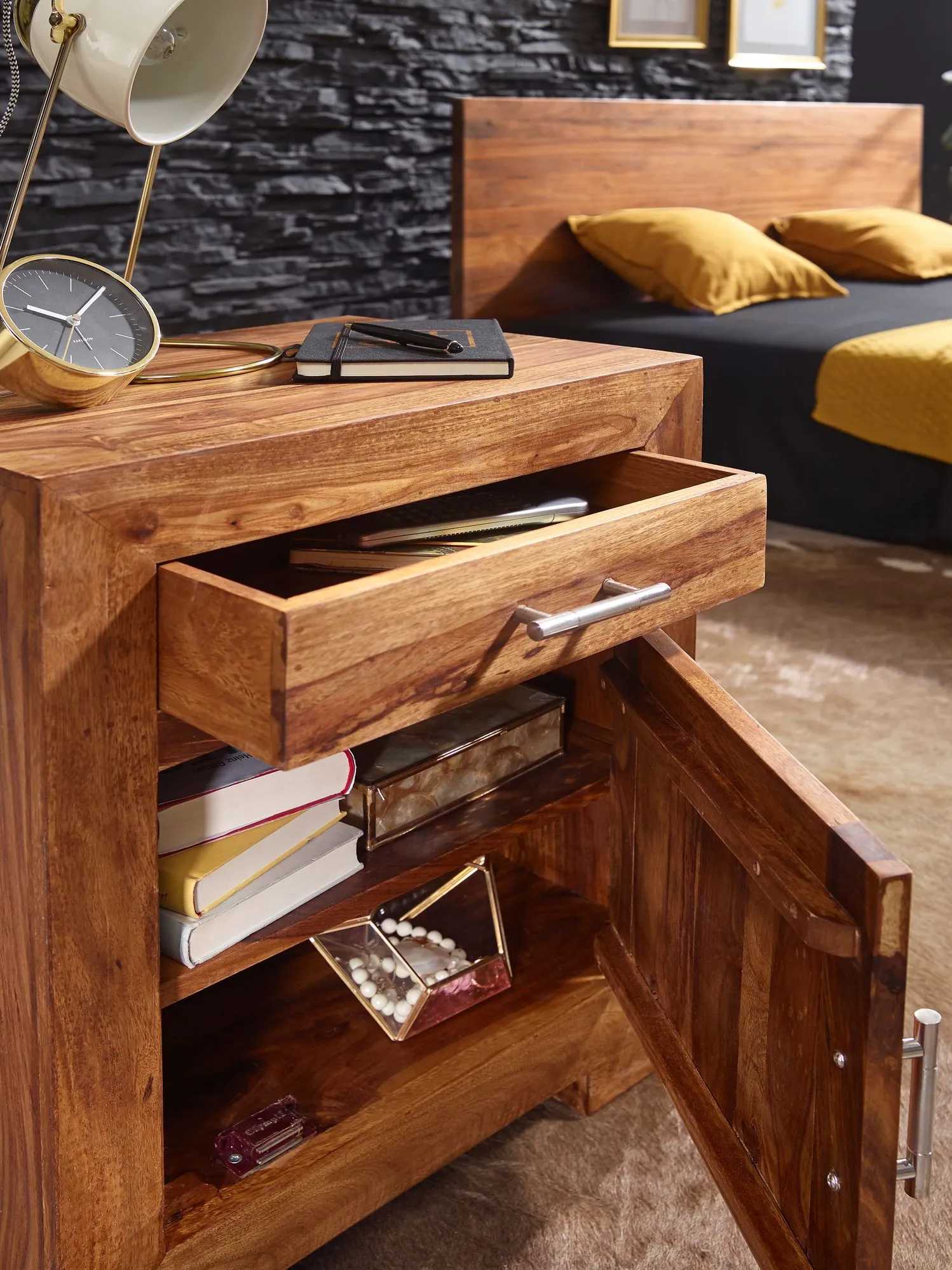 tinkaro eckiger Nachttisch DILA Massivholz Sheesham 012826 Nachtkommode Kästchen Braun