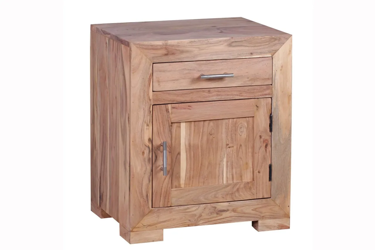 tinkaro eckiger Nachttisch LORE Massivholz Akazie 012140 Kästchen Nachtkommode Braun