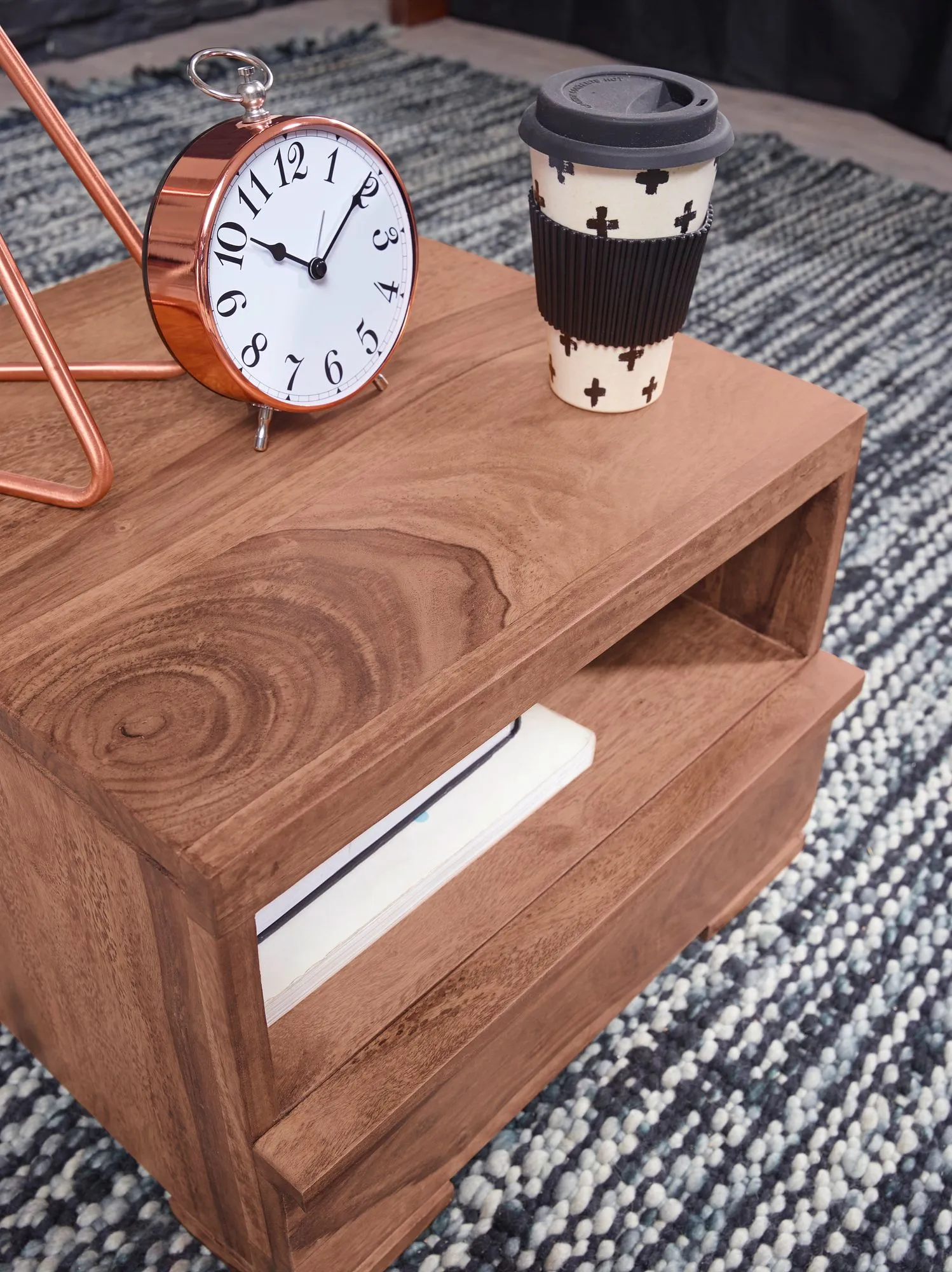 tinkaro Nachttisch eckig TARKAN Massiv-Holz Akazie Beistelltisch Braun