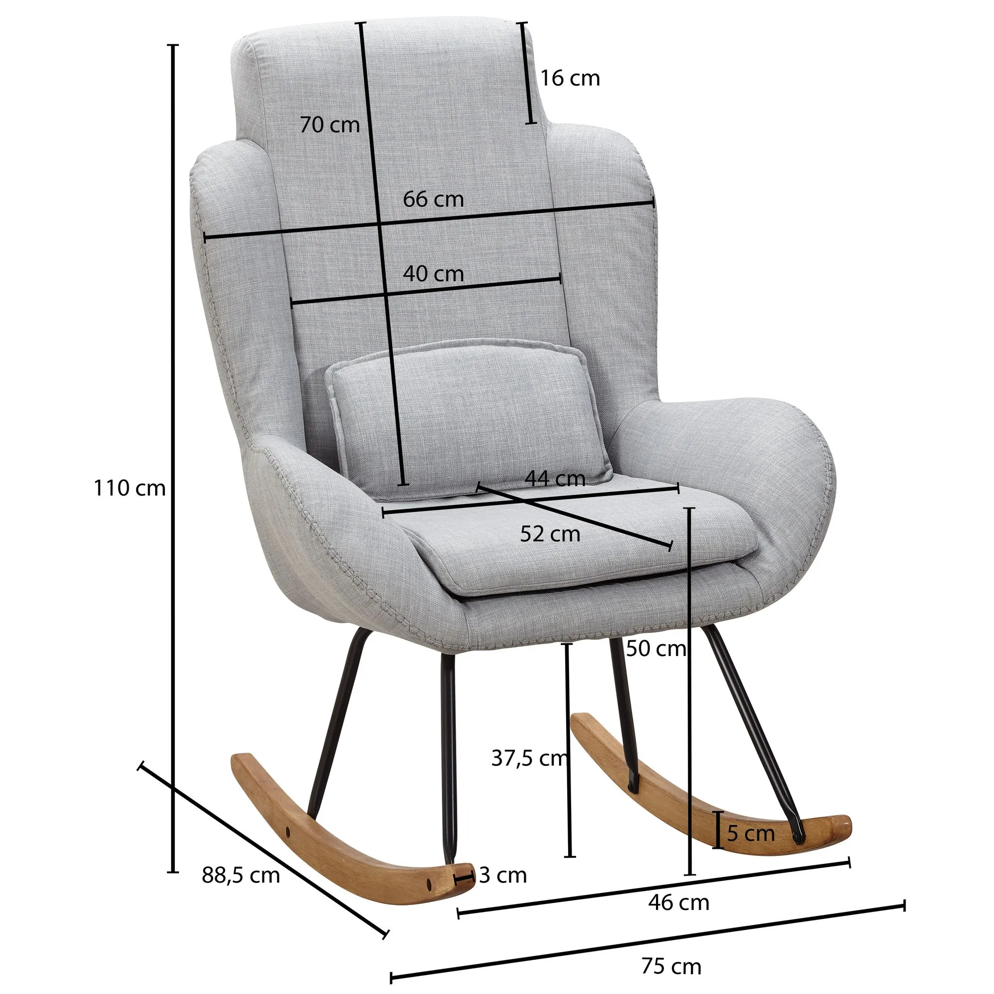 tinkaro schwingender Relaxsessel HOMER Rubberwood/Stoff 013111 Schaukelstuhl Wipp-Sessel Grau