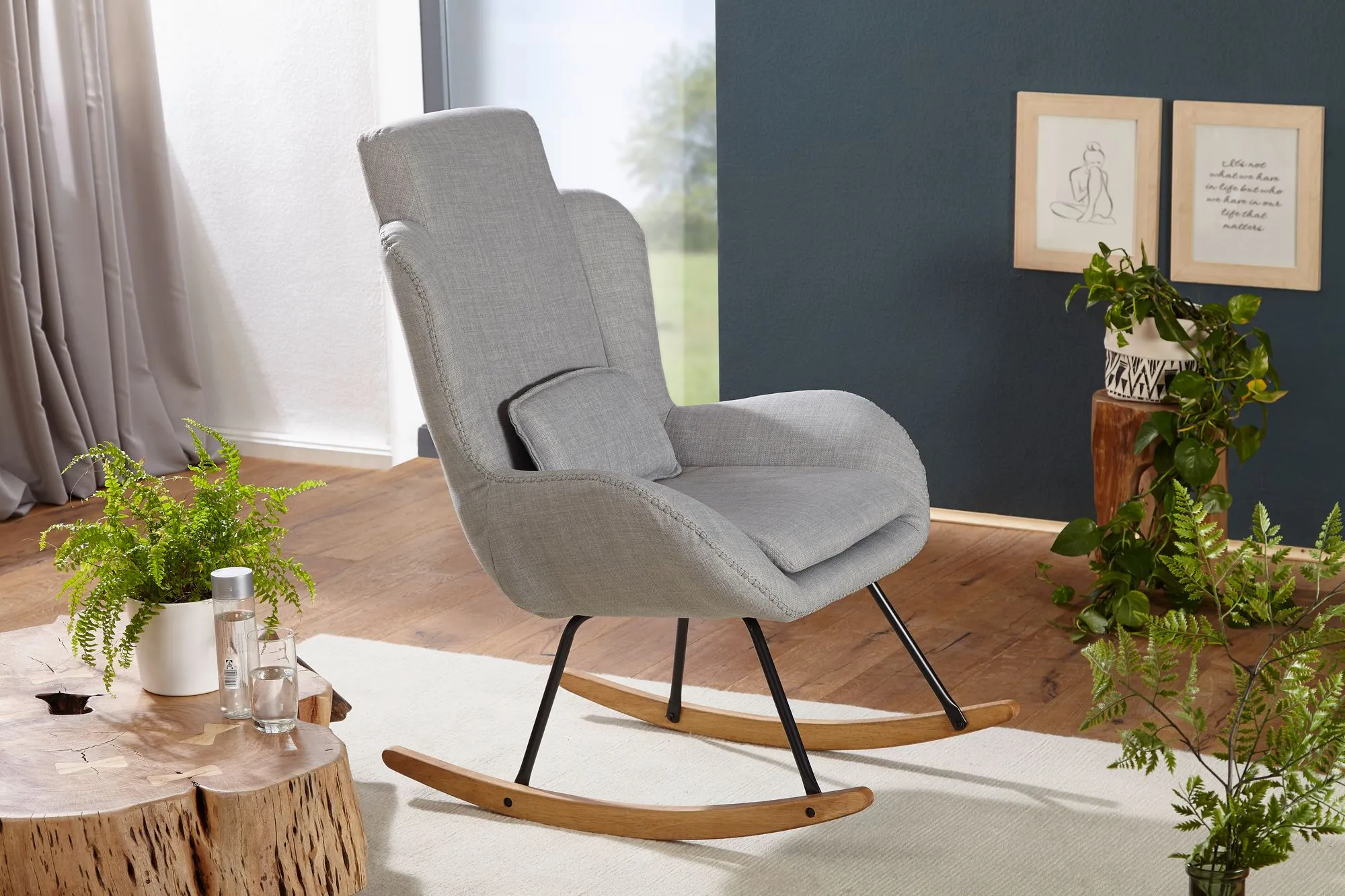 tinkaro Relaxsessel schwingend HOMER Rubberwood/Stoff Schaukelstuhl Grau