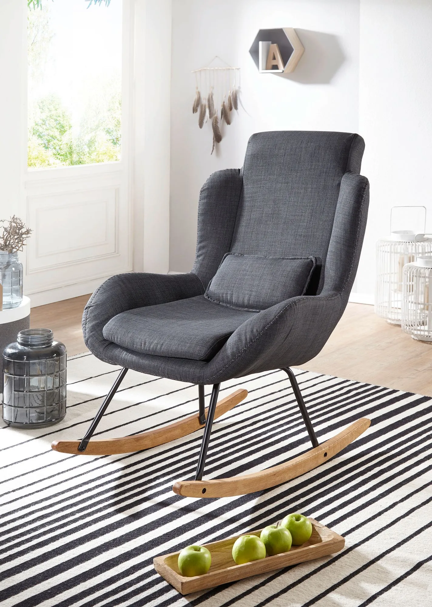 tinkaro Schaukelstuhl schwingend JANKO Rubberwood/Stoff Relaxliege Anthrazit