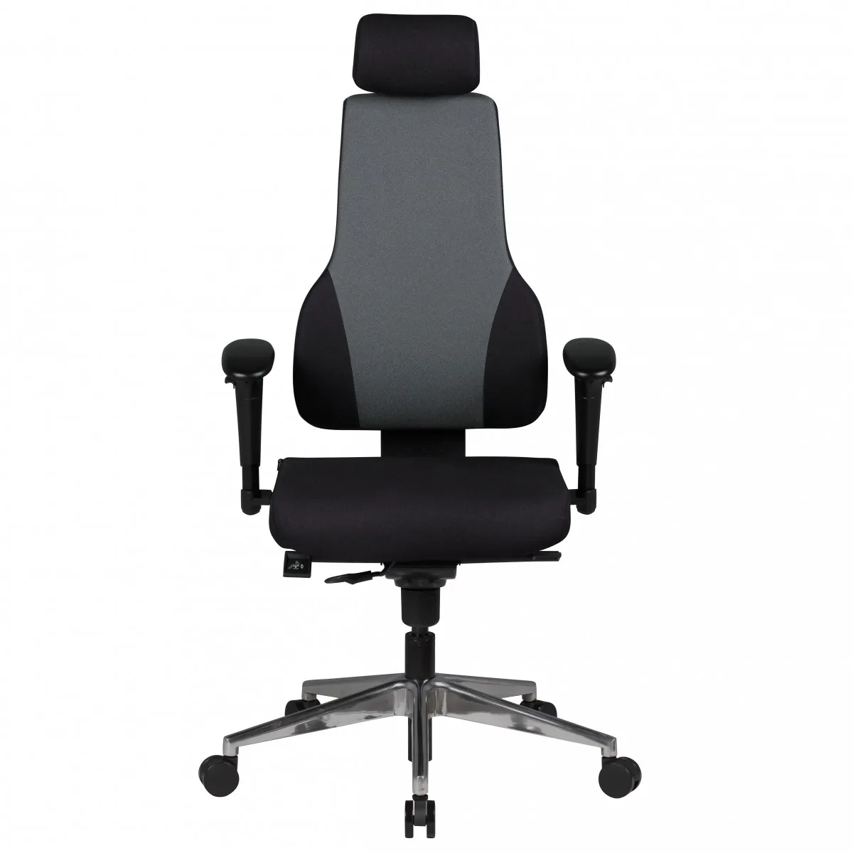 - Farbe: Rücken: Schwarz/Grau / Sitz & Armlehnen: Schwarz / Fußkreuz: Silber