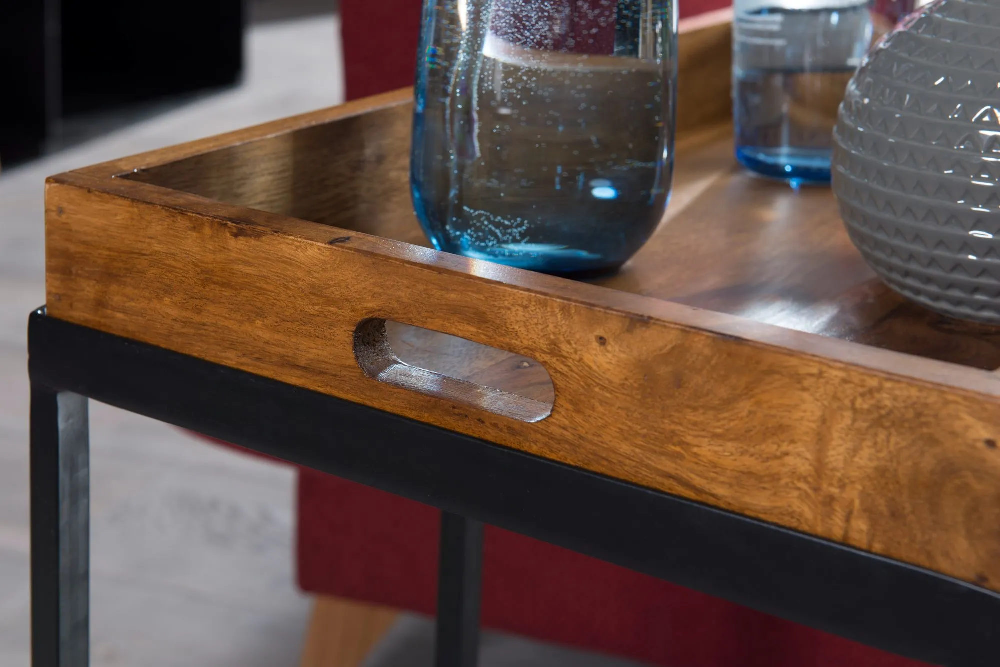 tinkaro Serviertisch SEON Tabletttisch Sheesham 012468 Metall Tablett Sofatisch