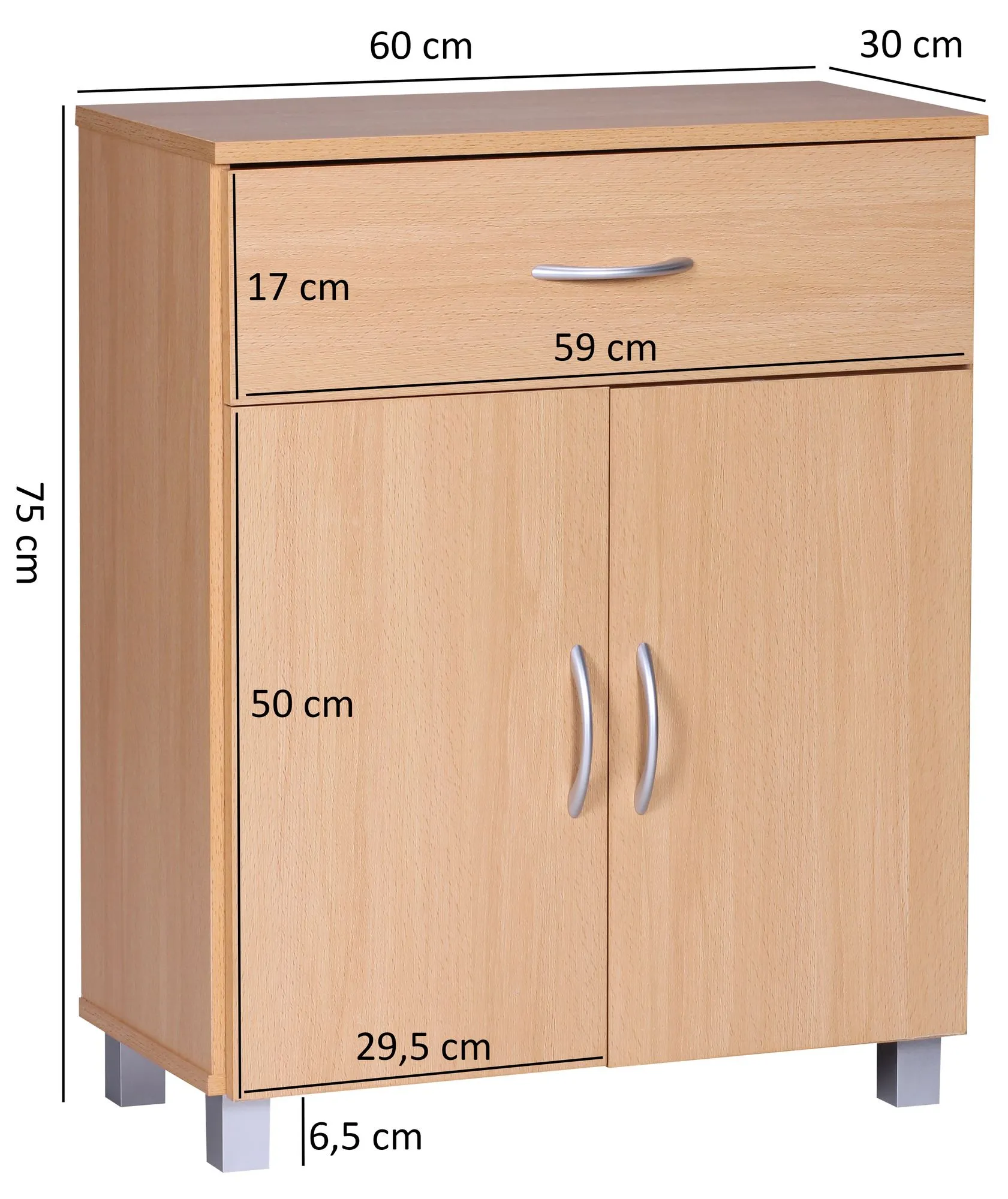 - Farbe Korpus: Buche / Griffe und Füße: Grau