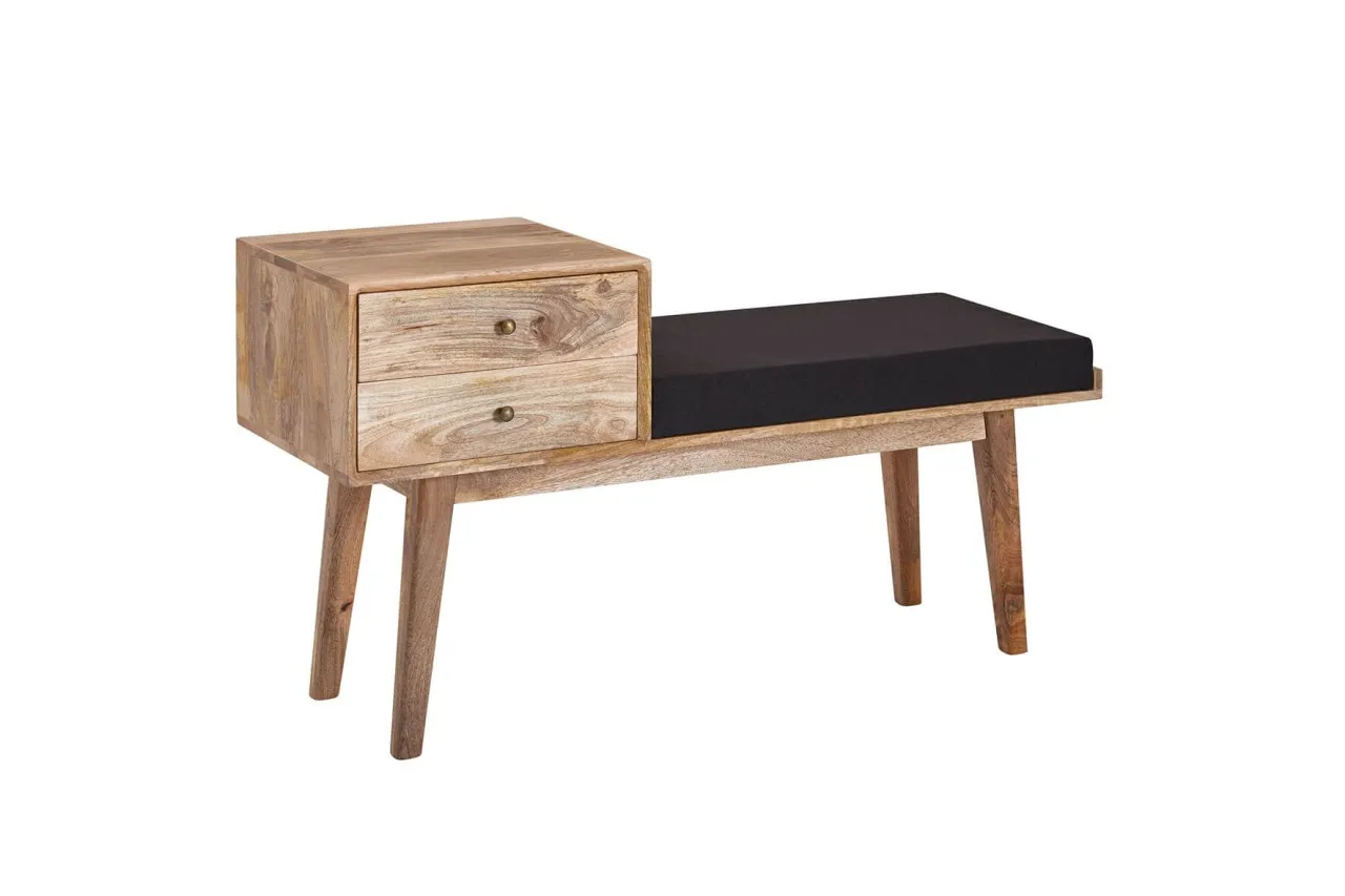 tinkaro eckige Sitzbank ANTONIUS Mango Massivholz/Stoff 012548 Flurbank Polsterbank Grau/Braun