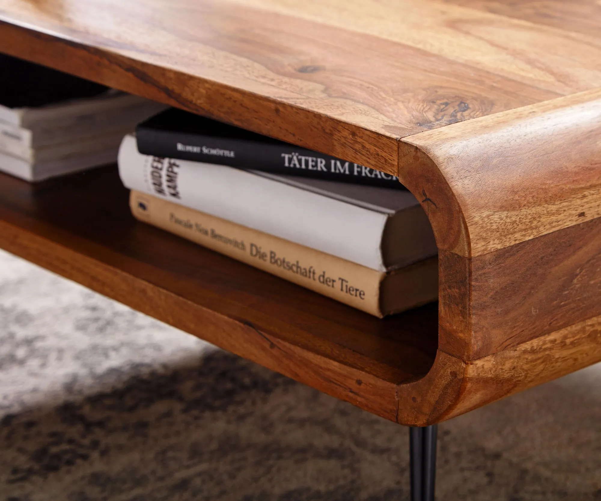 tinkaro Sofatisch rechteckig SORA Sheesham Massivholz/Metall Wohnzimmertisch Braun