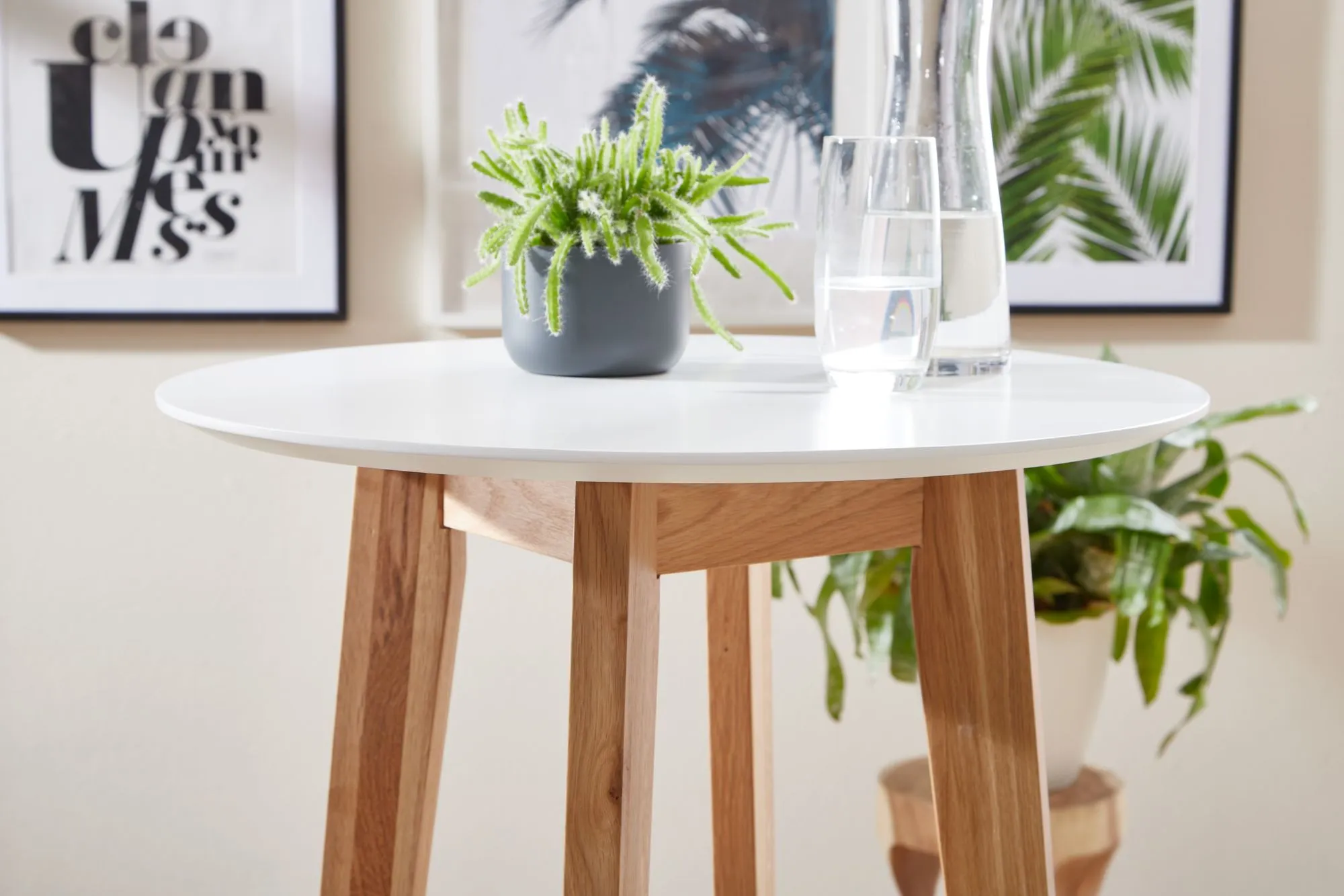 - Runde Tischplatte mit großzügiger Ablagefläche