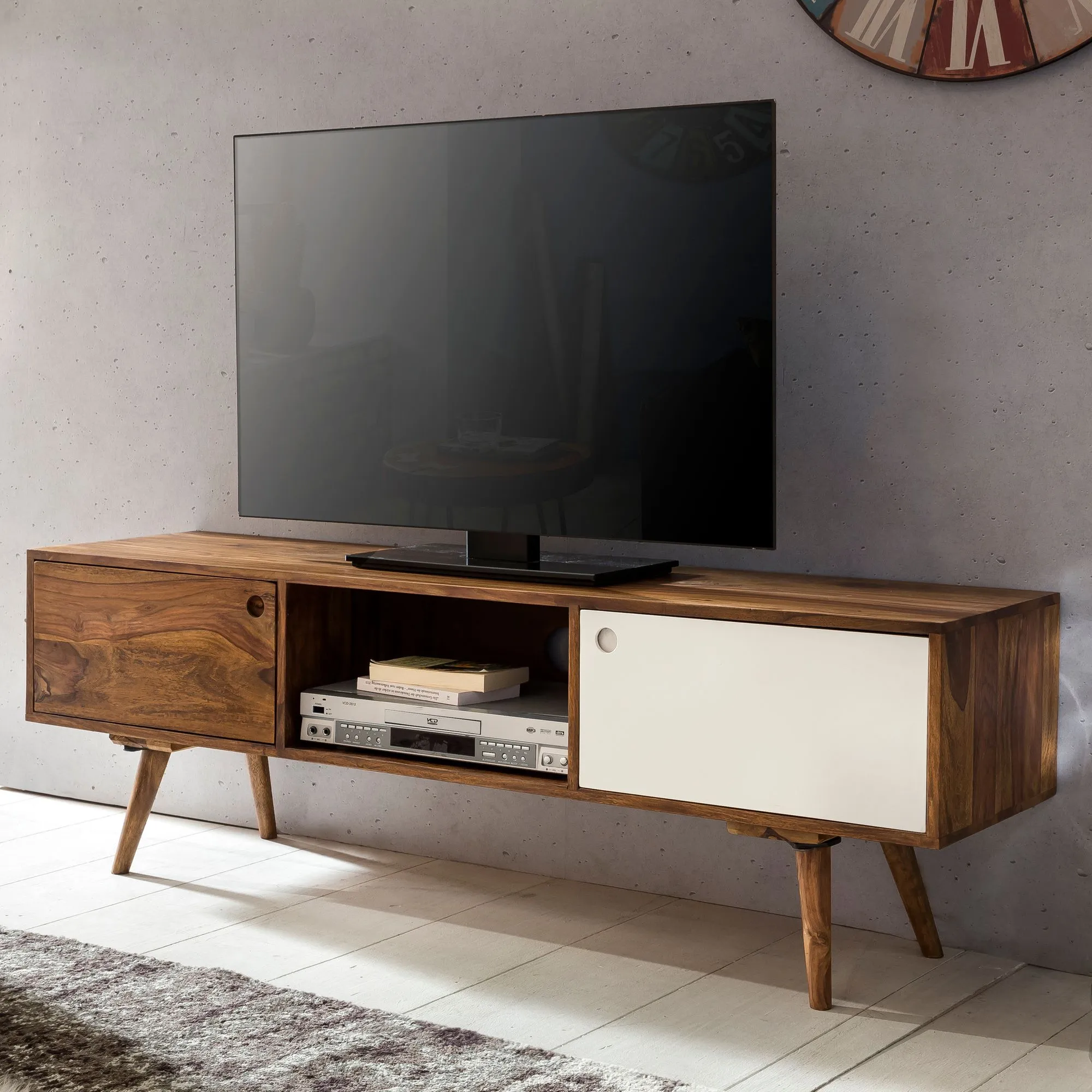 tinkaro TV Lowboard rechteckig TELSE Massiv-Holz Sheesham TV-Schrank Braun/Weiß
