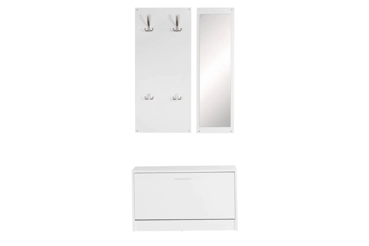 tinkaro eckige Wand-Garderobe BLEGA Holz 012183 Garderobe mit Spiegel & Schuhschrank Weiß