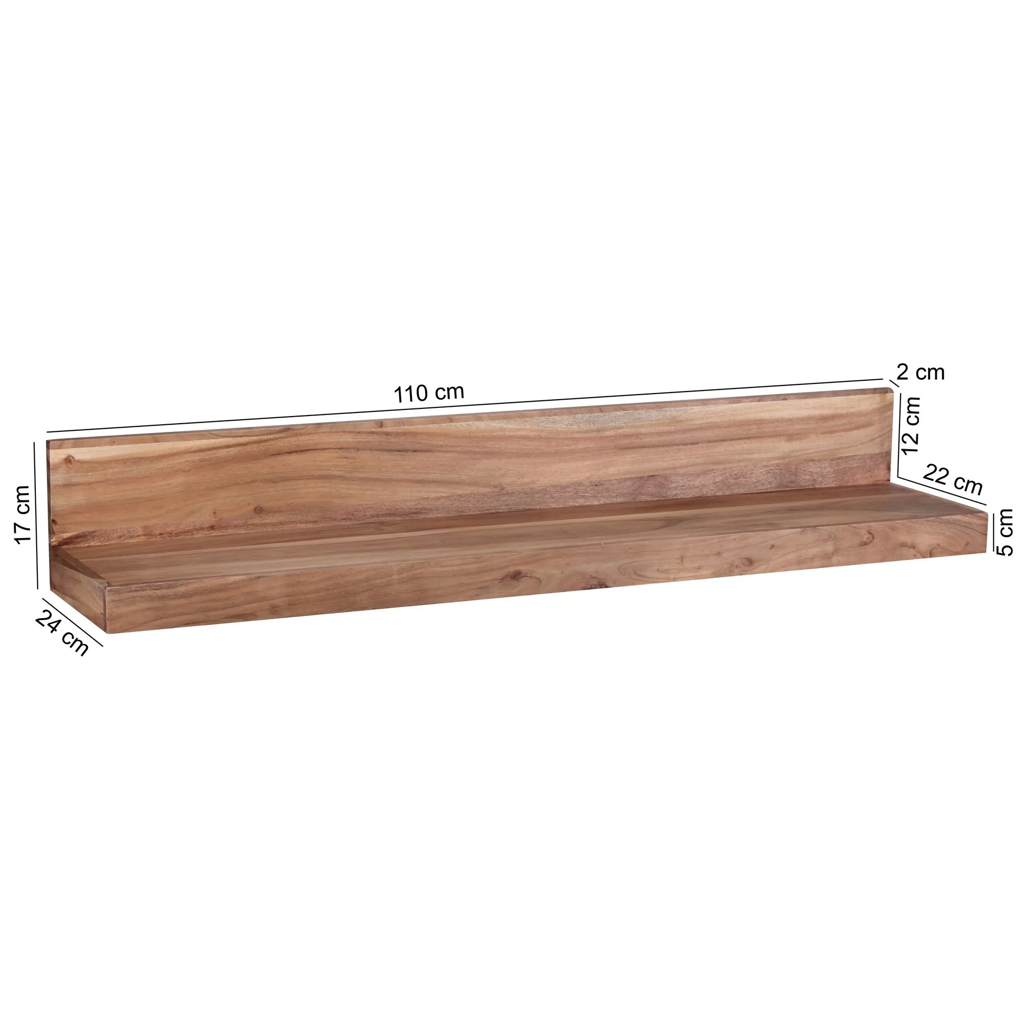 tinkaro Wandregal eckig TINO Massiv-Holz Akazie Panel Braun