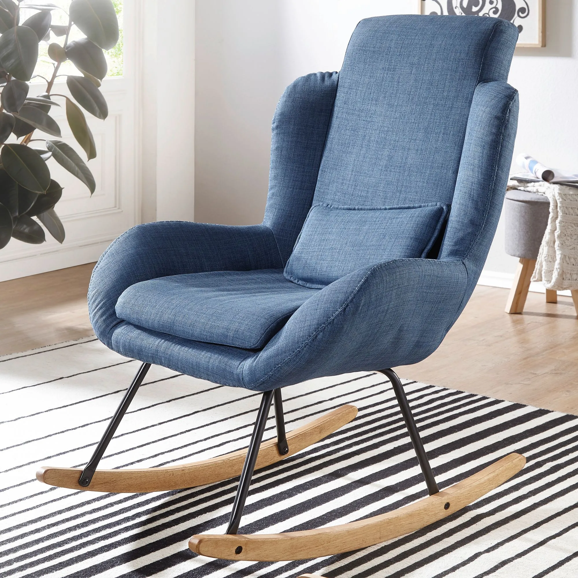 tinkaro Wipp-Sessel schwingend ENDRIN Stoff Schaukelstuhl Blau