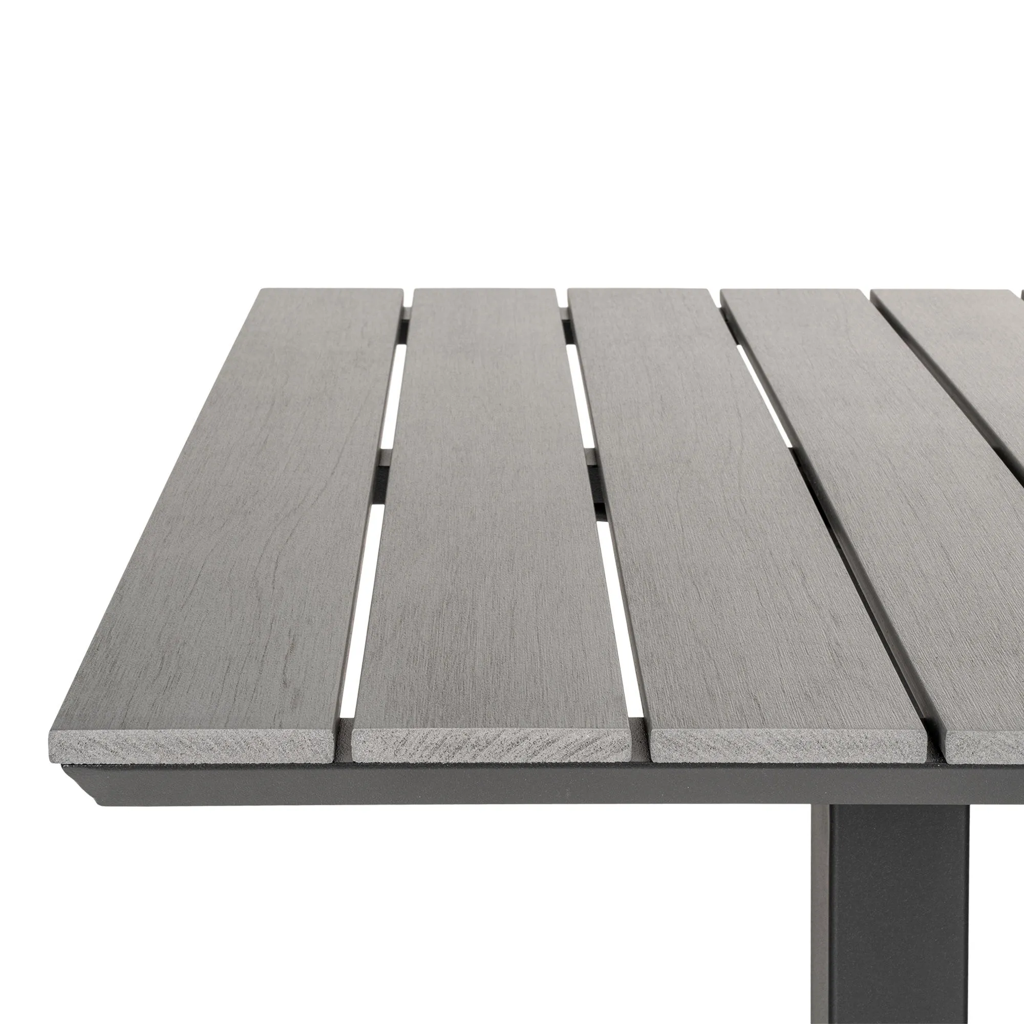 Der Bistrotisch Chicago vereint modernes Design mit erstklassiger Funktionalität. Mit seiner quadratischen Form und stabilen, kreuzförmigen Basis ist dieser Tisch für Außenbereiche, ob im Garten, auf der Terrasse oder Balkon. Die elegante Farbgebung aus Grau und Schwarz verleiht ihm eine zeitgemäße Ästhetik, die sich hervorragend in diverse Einrichtungsstile einfügt.