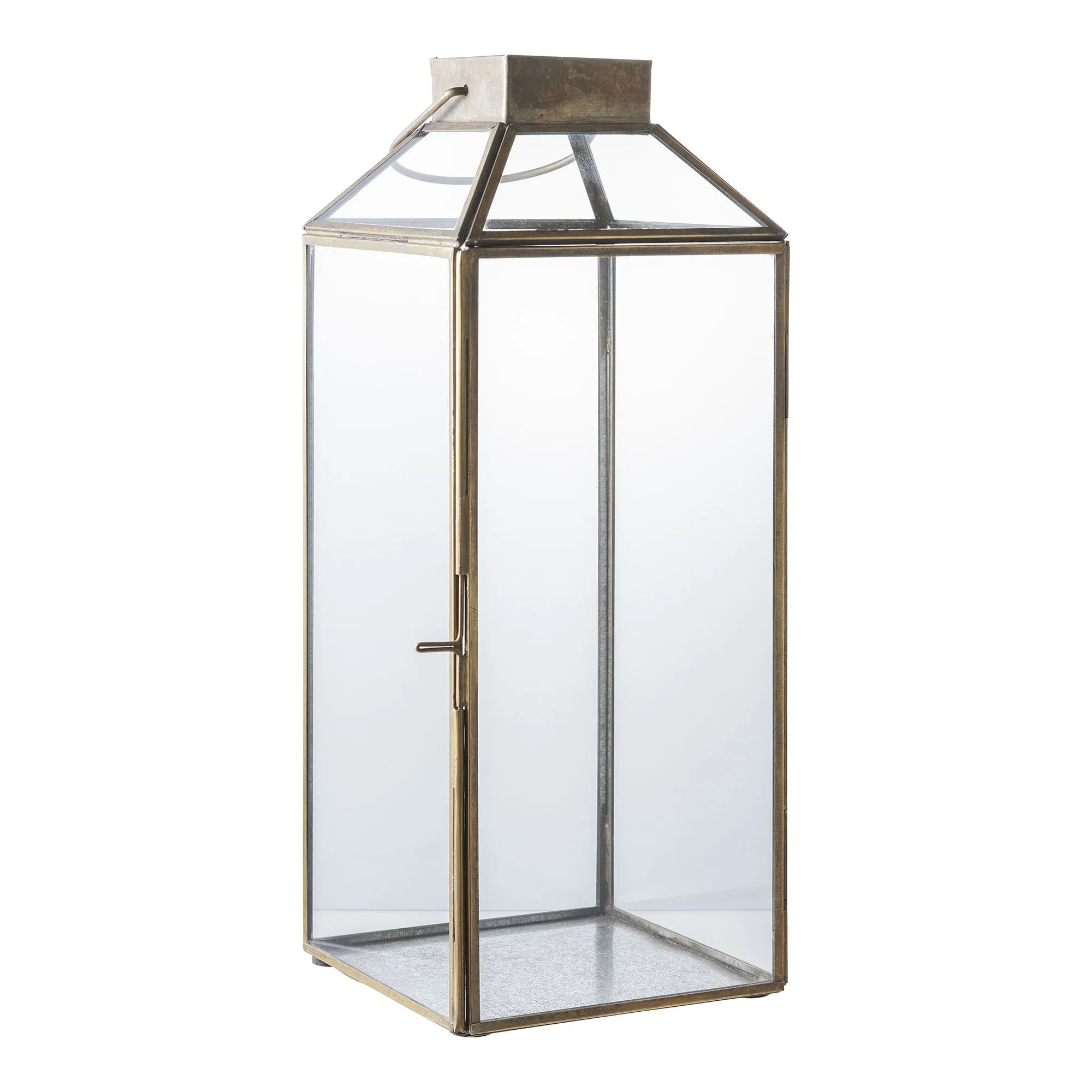 Mysore Laterne aus Glas und Metall im Antik-Bronze-Aussehen