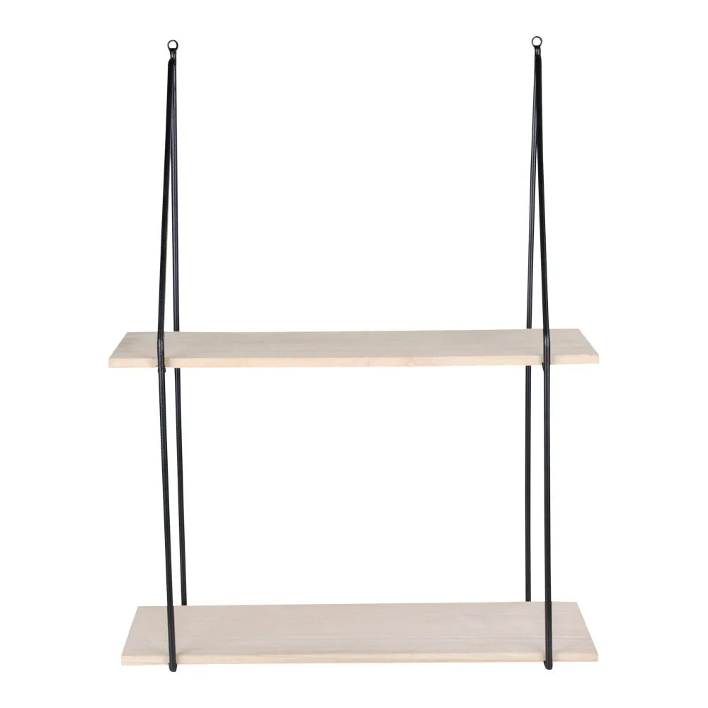 Wandregal Haag Stahl, Paulownia Schwarz / naturale – Modernes hängendes Regal