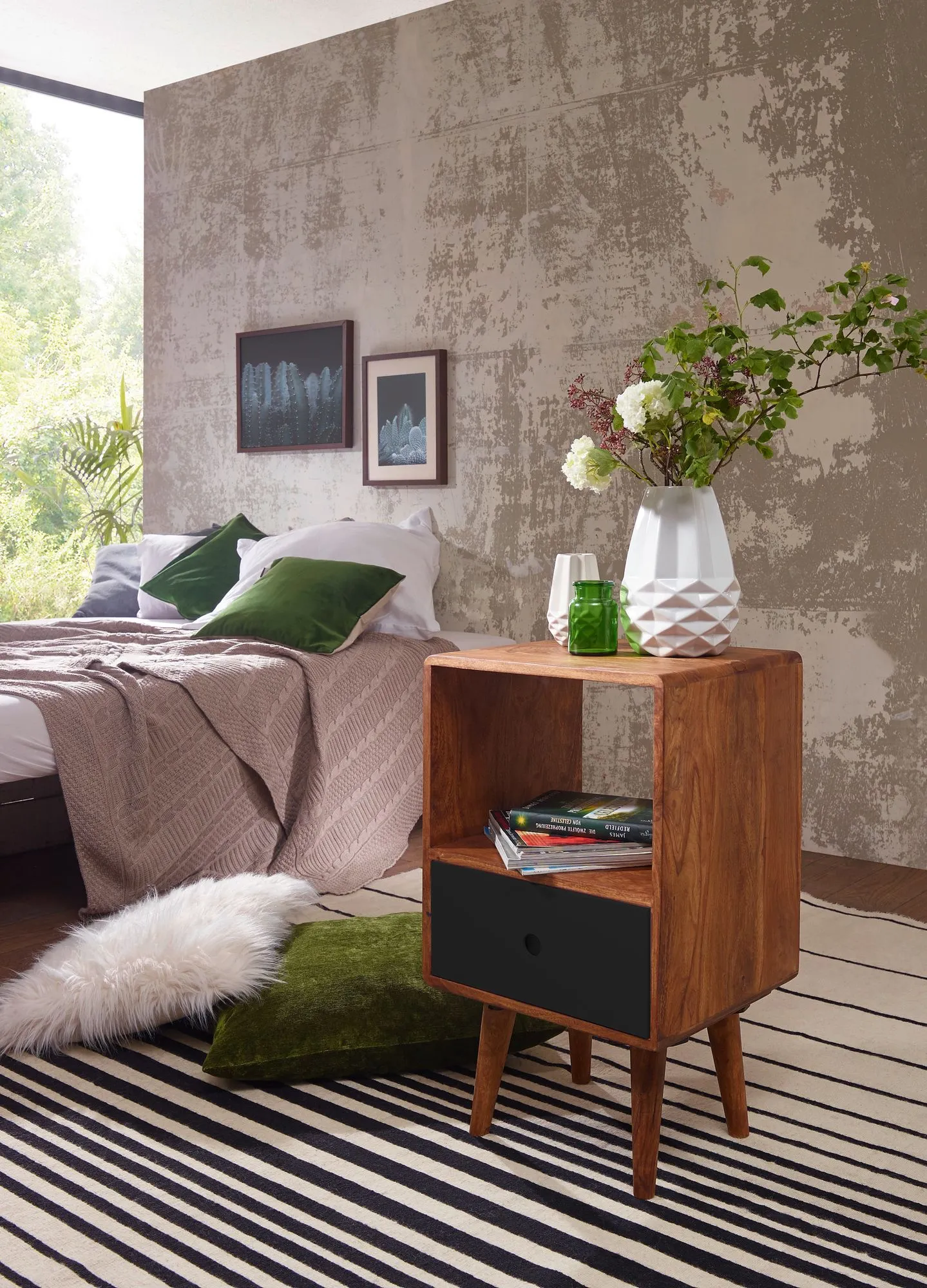 tinkaro retro Nachtkommode SADA Nachttisch mit Schublade Schrank 012992 Sheesham Nachtschrank