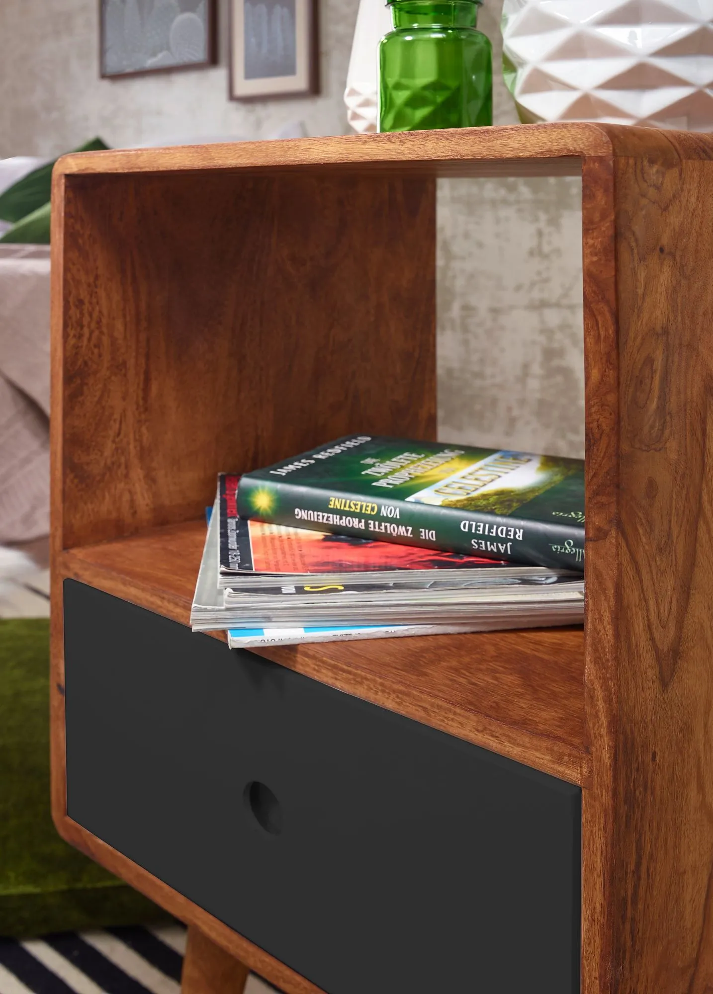 tinkaro retro Nachttisch SADA Nachtkonsole eine Schublade Sheesham Nachtkästchen