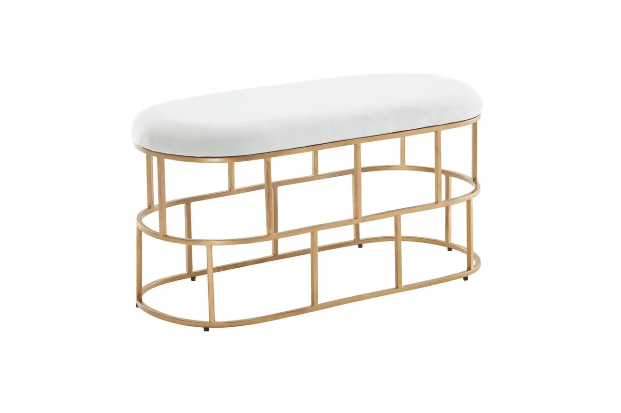 tinkaro Sitzbank BARDH Samt Flur Polsterbank mit Metallgestell Weiß / Gold
