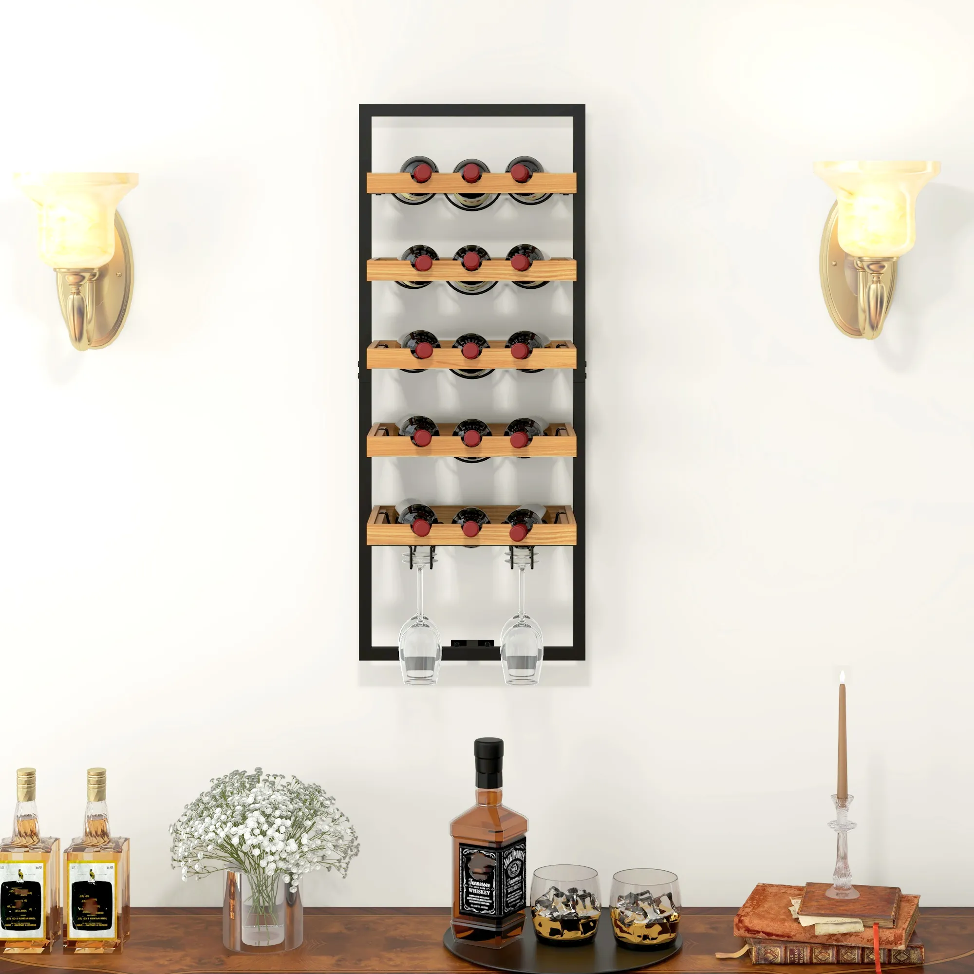 Mit dem Wand-Weinregal lagern Sie Ihren Wein wie ein Profi. Das elegante Design des Weinflaschenhalters mit 5 Etagen und Gläserhalter fasst 15 Flaschen und 4 Gläser, spart Platz und sorgt dafür, dass Ihr Wein stets griffbereit ist. Die vertikale Lagerung des Flaschenständers bewahrt die Korkenfeuchtigkeit und verlängert die Haltbarkeit des Weins. Ein Muss für jeden Weinliebhaber!