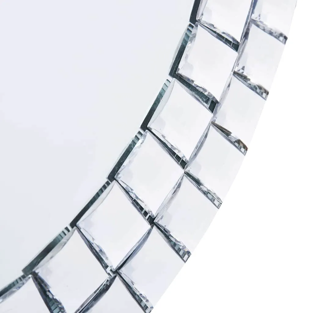 Unser runder Wandspiegel ist sowohl eine praktische als auch eine dekorative Ergänzung zu Ihrem Badezimmer, Wohnzimmer oder Schlafzimmer. Der Spiegel verfügt über einen schönen Acrylkristallrand, der dem Spiegel Eleganz verleiht und ihn zum Mittelpunkt Ihres Wohnzimmers macht. Unser Badezimmerspiegel ist zeitgemäß gestaltet und besteht aus gehärtetem Glas, was seine Langlebigkeit gewährleistet. Der Spiegel kann einfach an der Wand montiert werden.