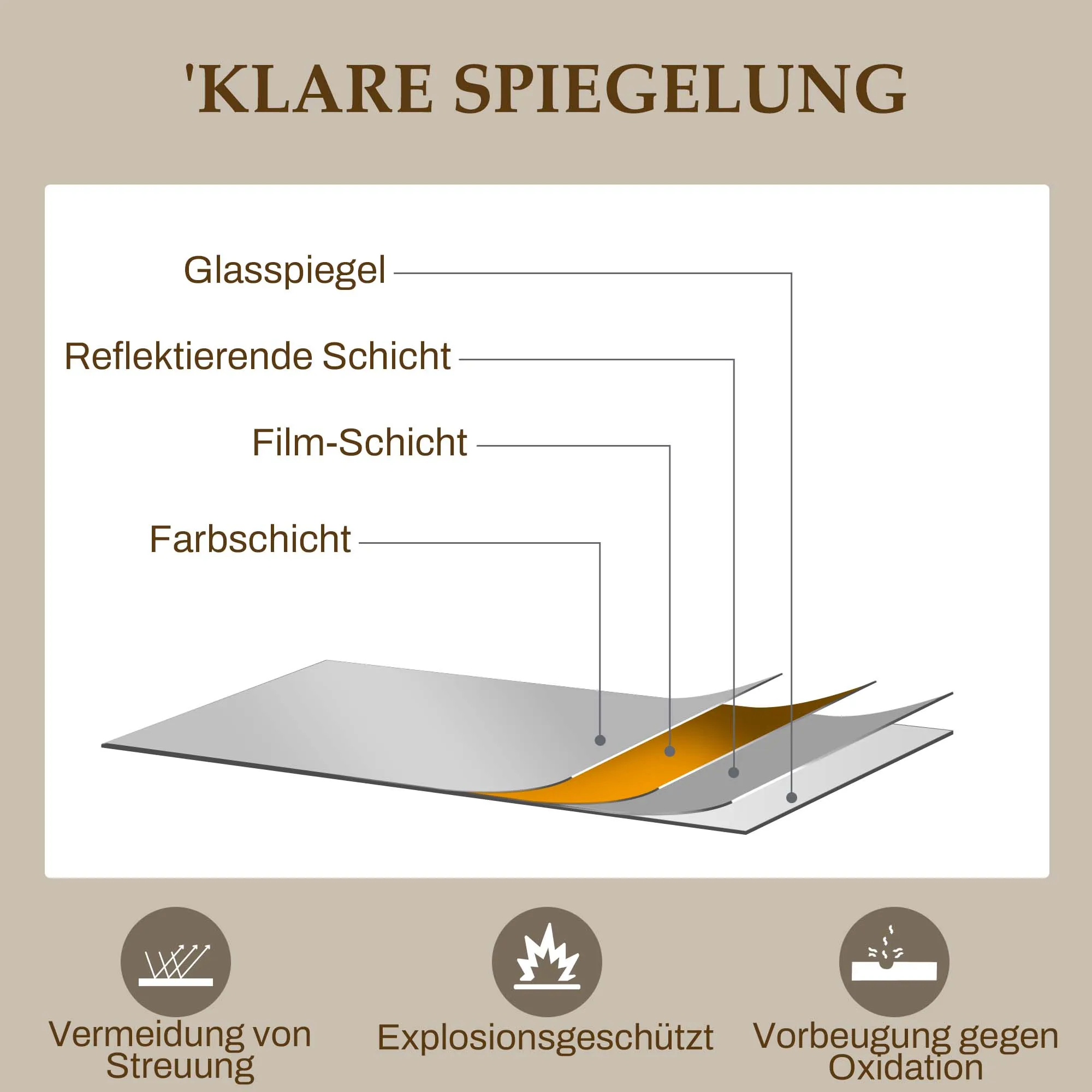 - Metallrahmen des Flurspiegels mit Pulverbeschichtung gewährleistet hohe Stabilität