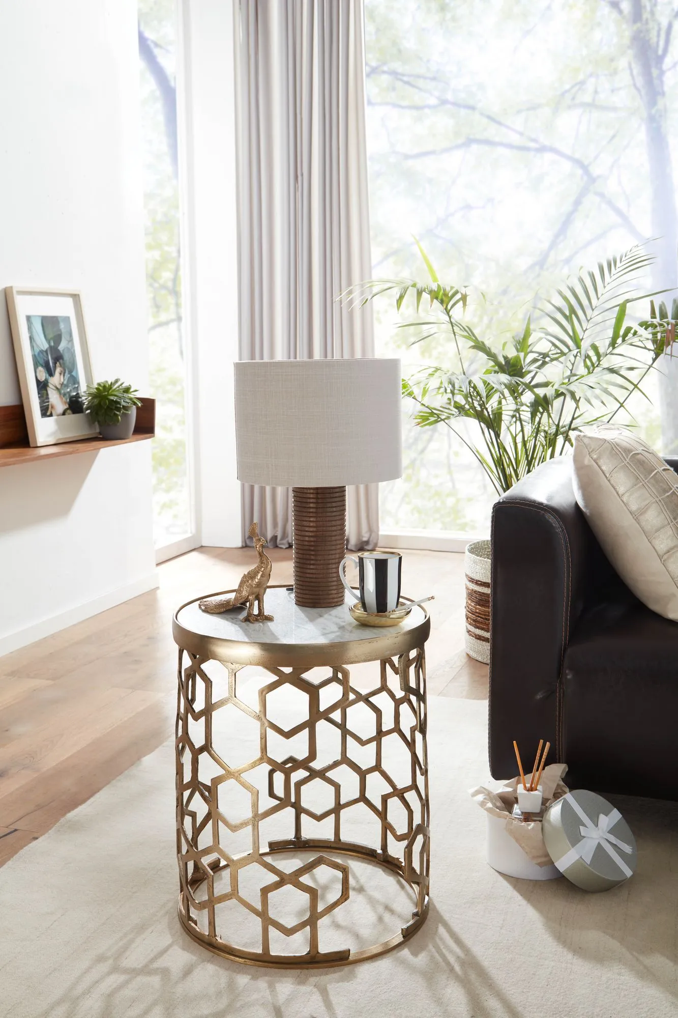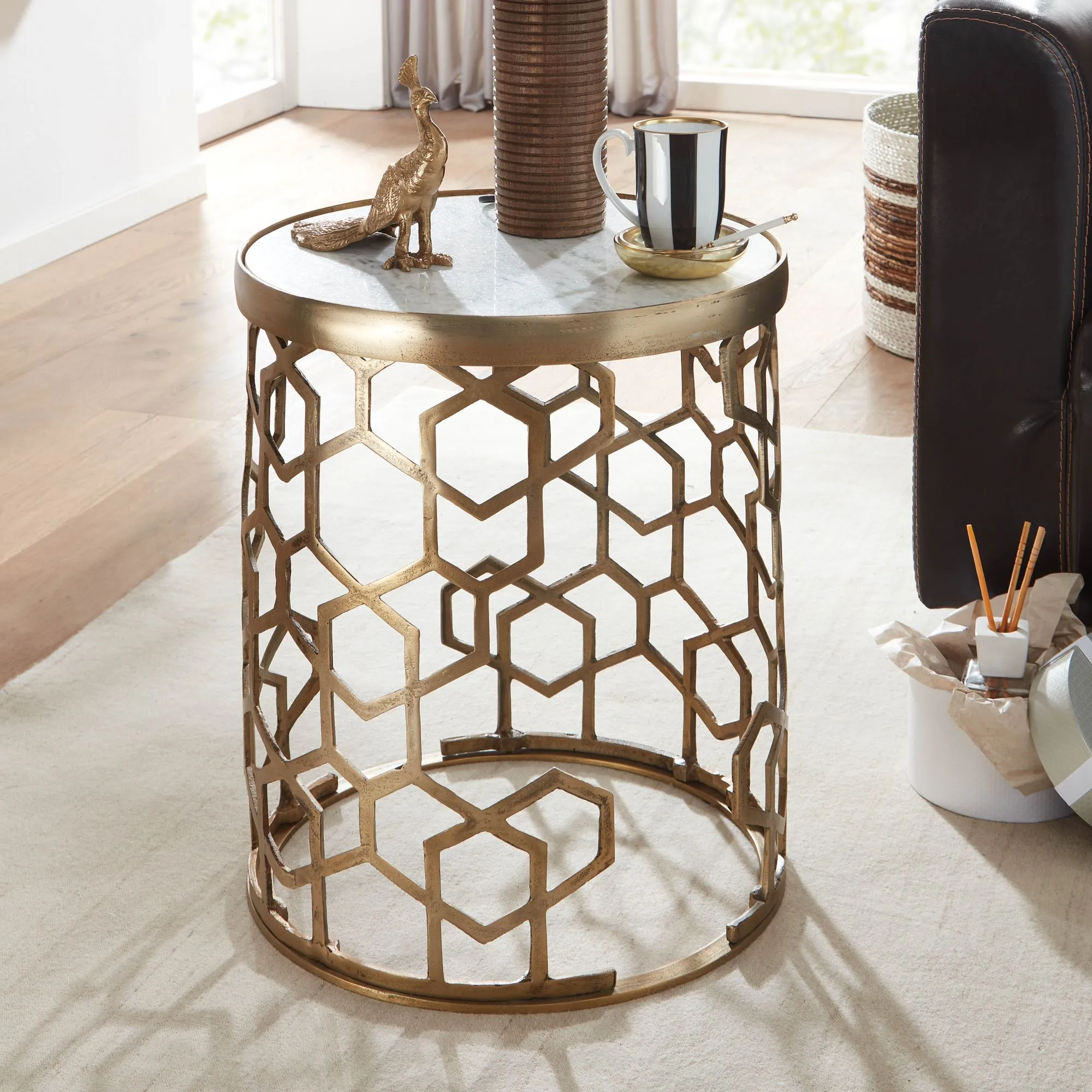 Wohnling Beistelltisch Echter Marmor Weiß 46x46x55 cm Anstelltisch Metall Gold