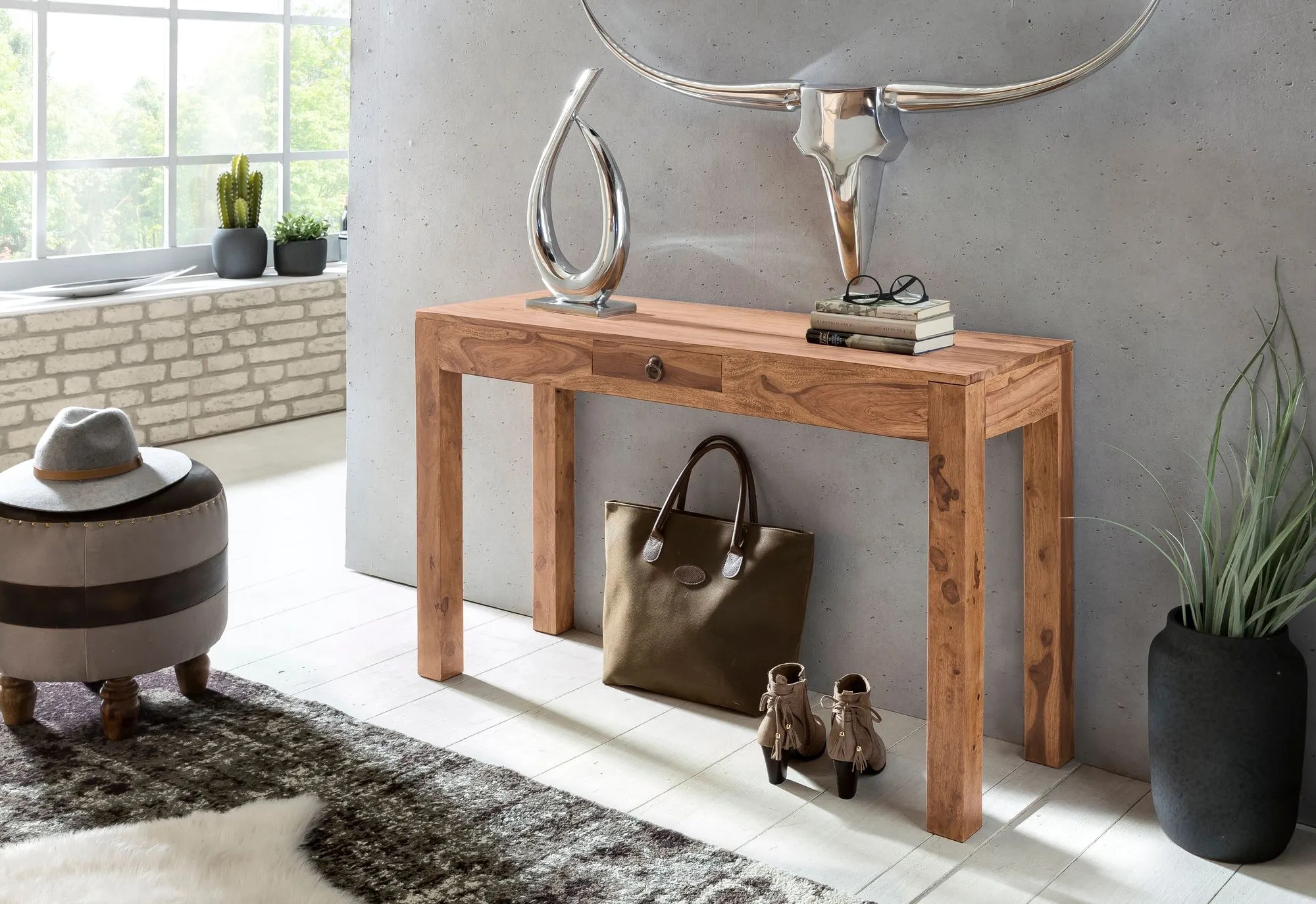 WOHNLING Konsolentisch MUMBAI WL1.454 Massivholz Akazie Konsole mit 1 Schublade