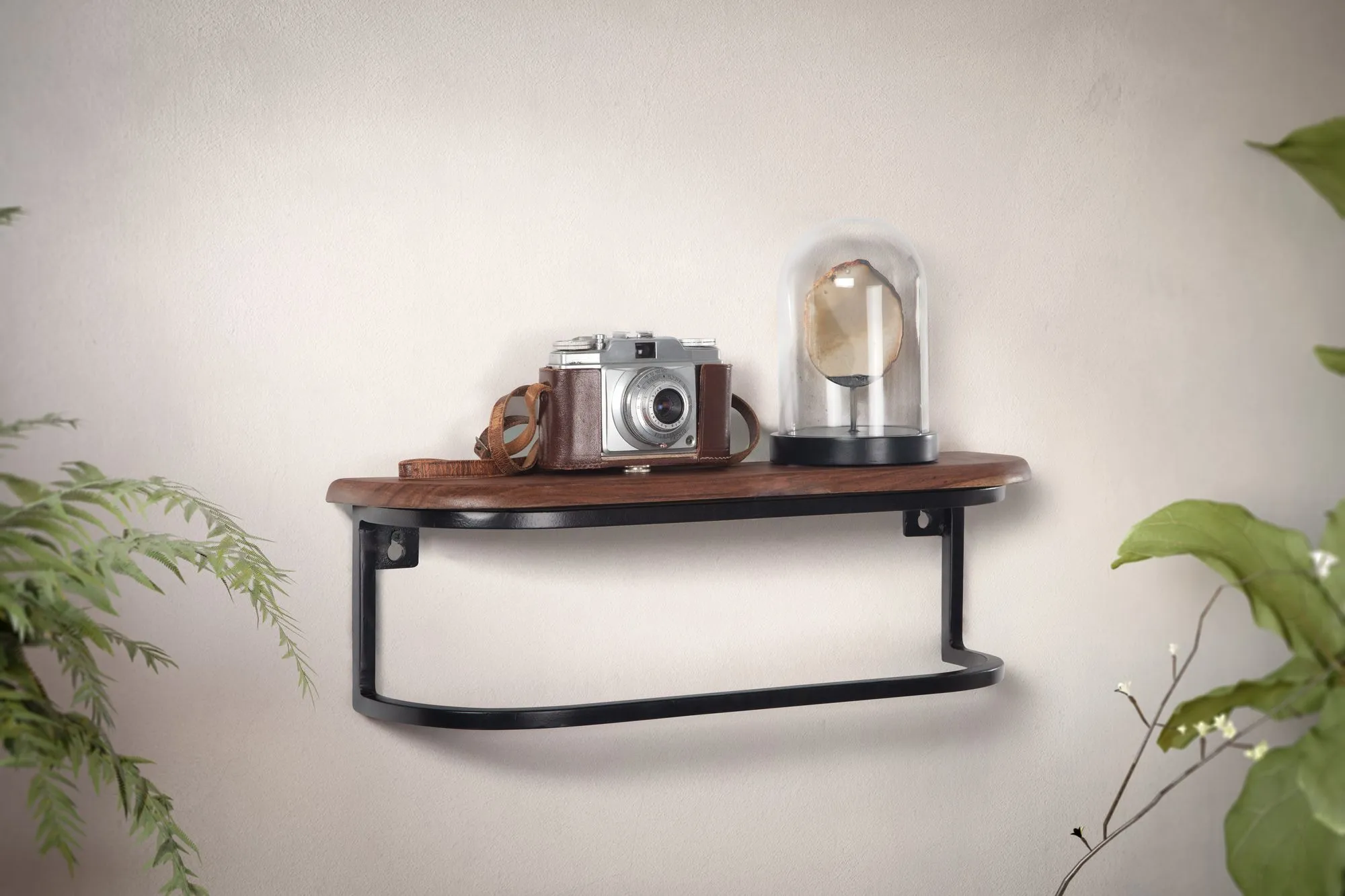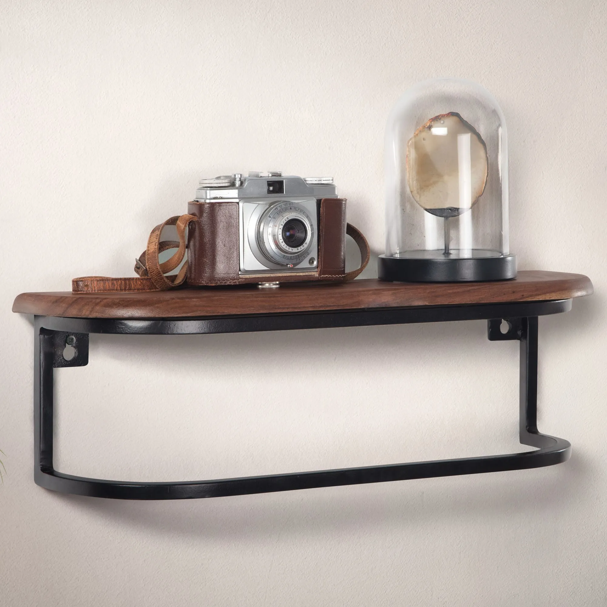Wohnling Wandregal 50x15x13 cm Sheesham Massivholz / Metall Hängeregal Industrial